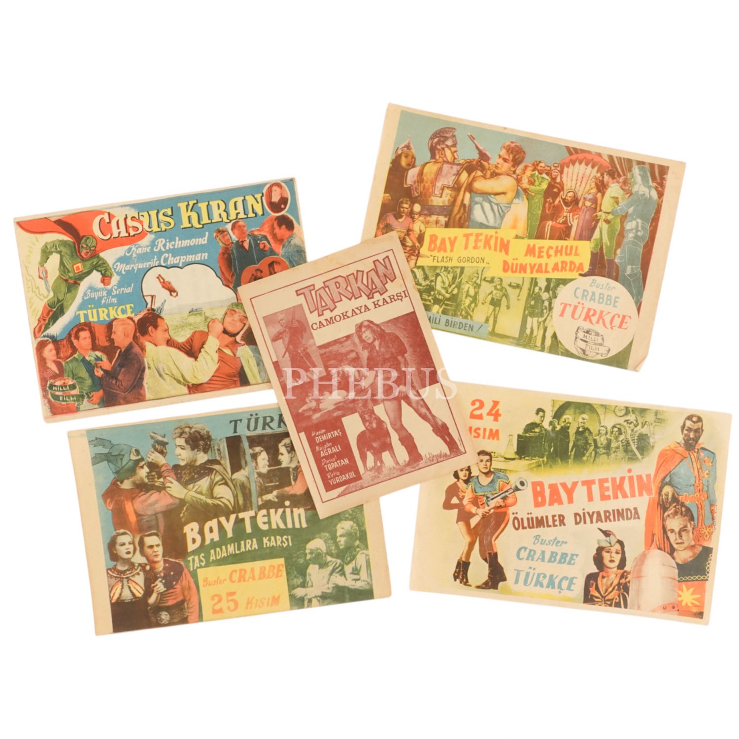 Baytekin Ölümler Diyarında, Baytekin Taş Adamlara Karşı, Baytekin Meçhul Diyarlarda, Casus Kıran ve Tarkan Camokaya Karşı filmlerinin lobi kartları...