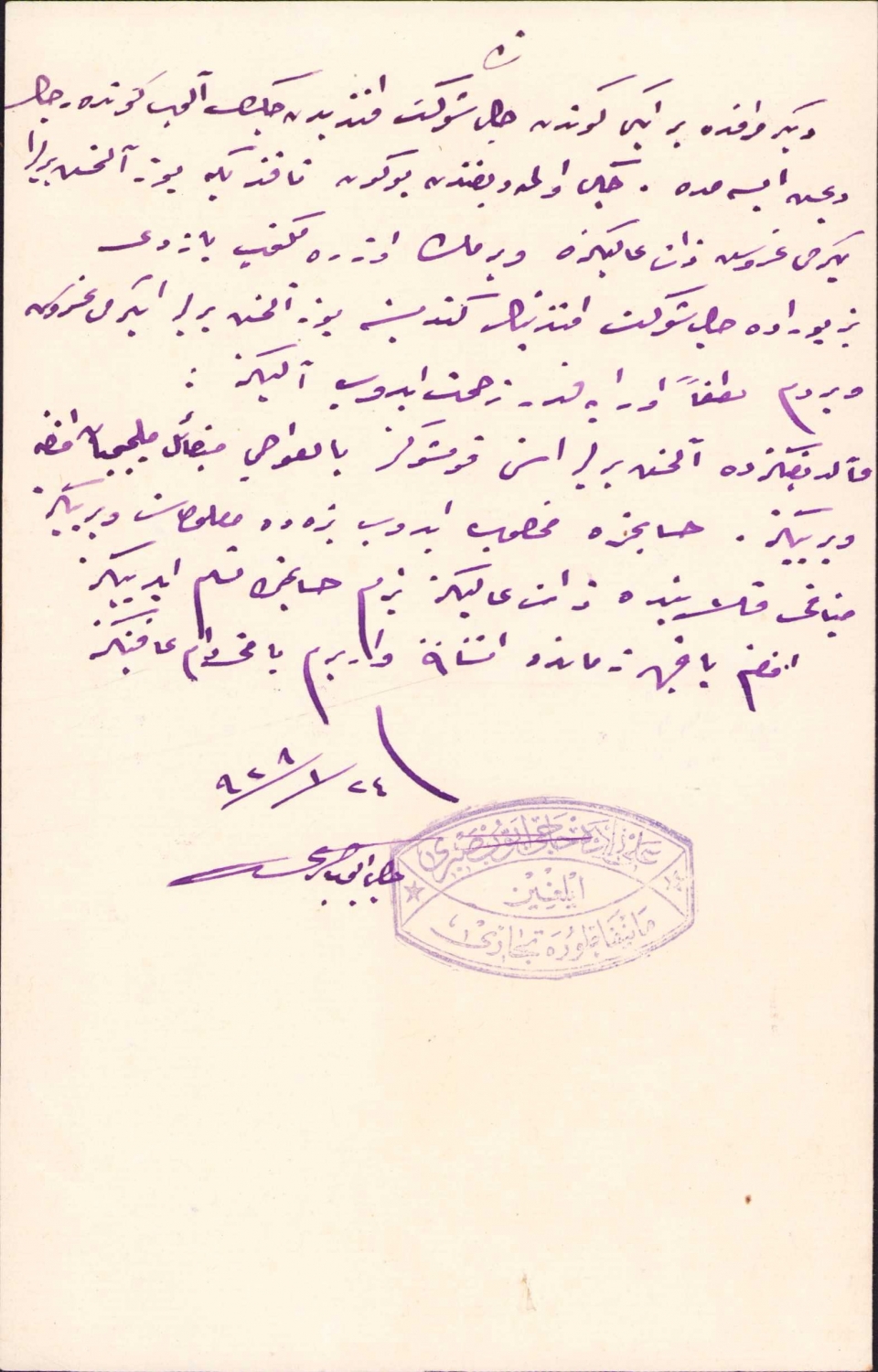 Osmanlıca Ali Zade Hacı Eyüp Sabri Manifatura Ticareti damgalı, Hacı Eyüp Sabri imzalı evrak, 1928, 2 sayfa, 13x20 cm