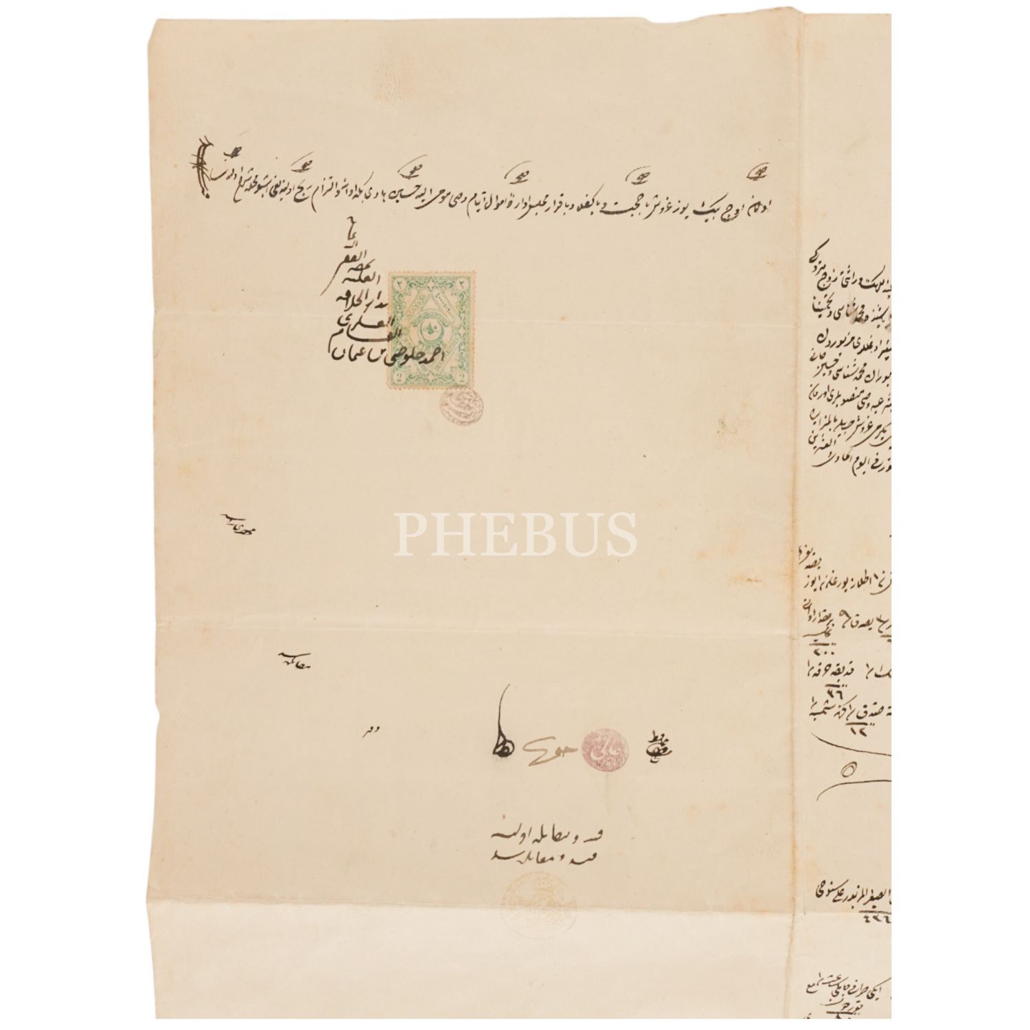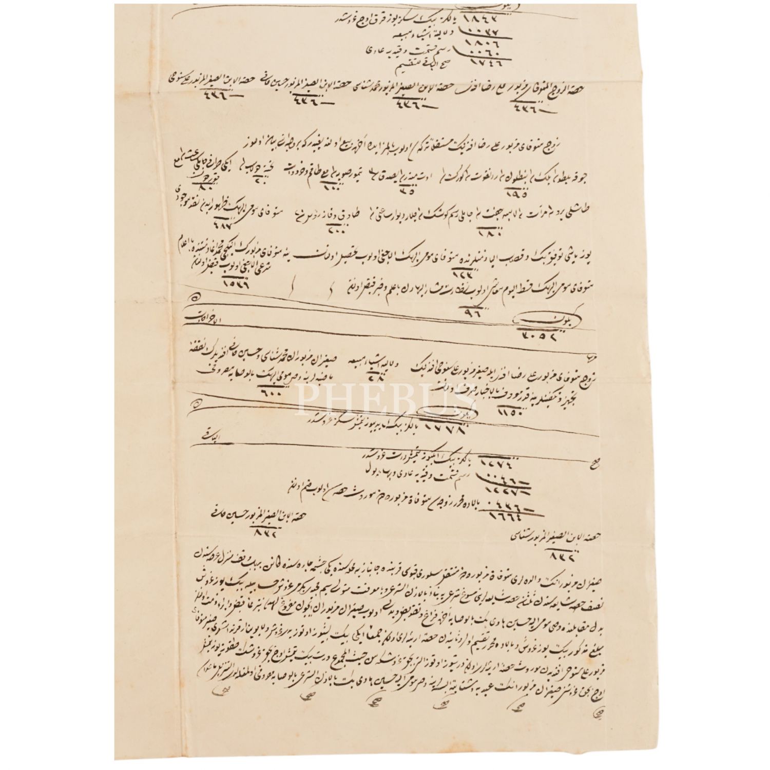 İstanbul Silivrikapı Hancı Karagöz Mahallesi´nde vefat eden Abdülkadir Efendi´nin mirasının varisleri arasında pay edilmesini konu alan hüccet, 57x42 cm...