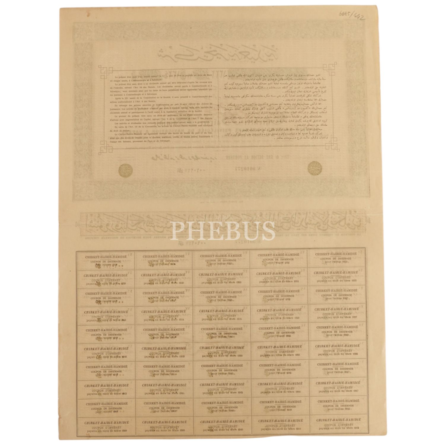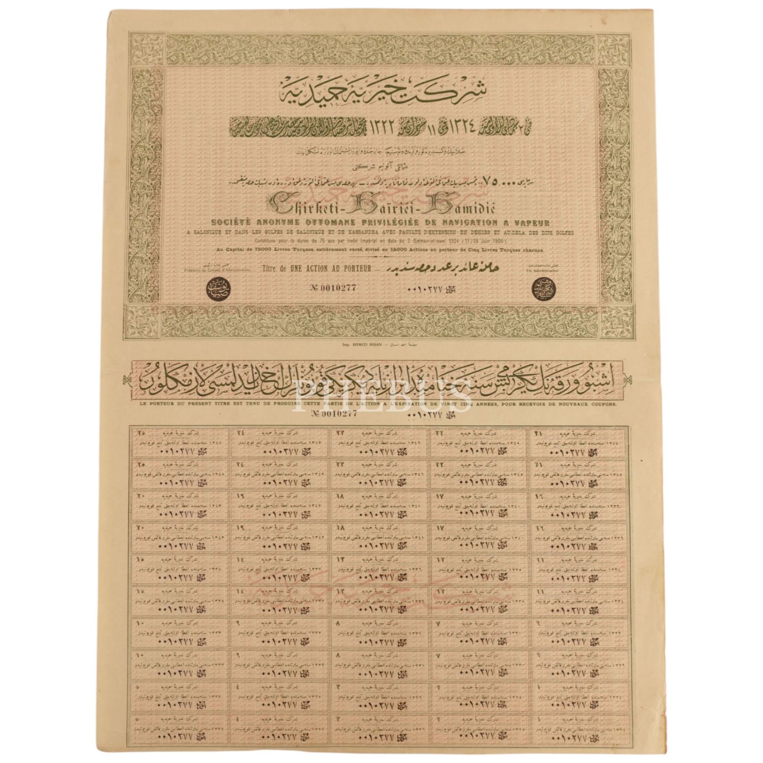 ŞİRKET-İ HAYRİYE-İ HAMİDİYYE´nin hisse senedi, 54x40 cm...