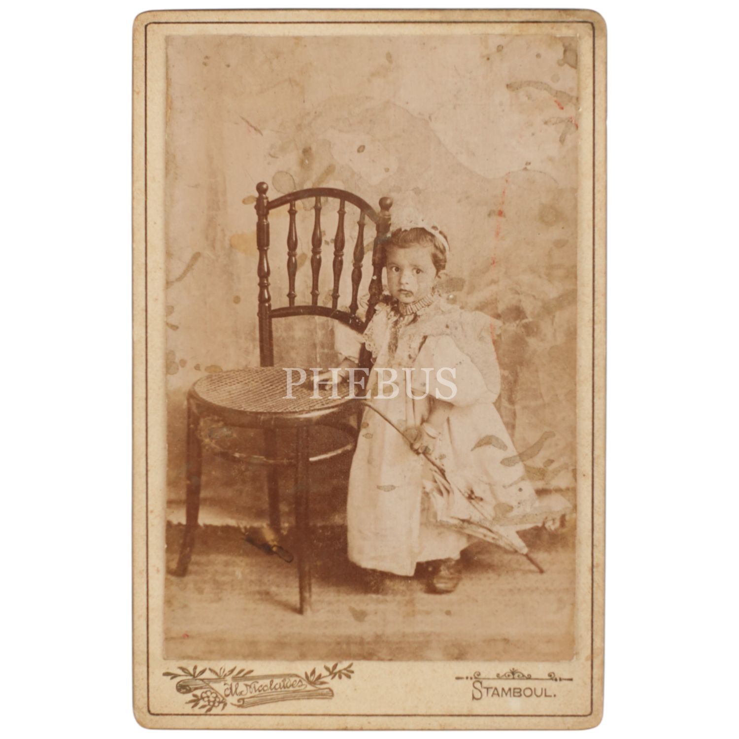 Küçük bir kız çocuğunun M. Nicolaides Fotoğrafhanesi´nde (İstanbul) çektirdiği fotoğrafı, 9x12 cm...