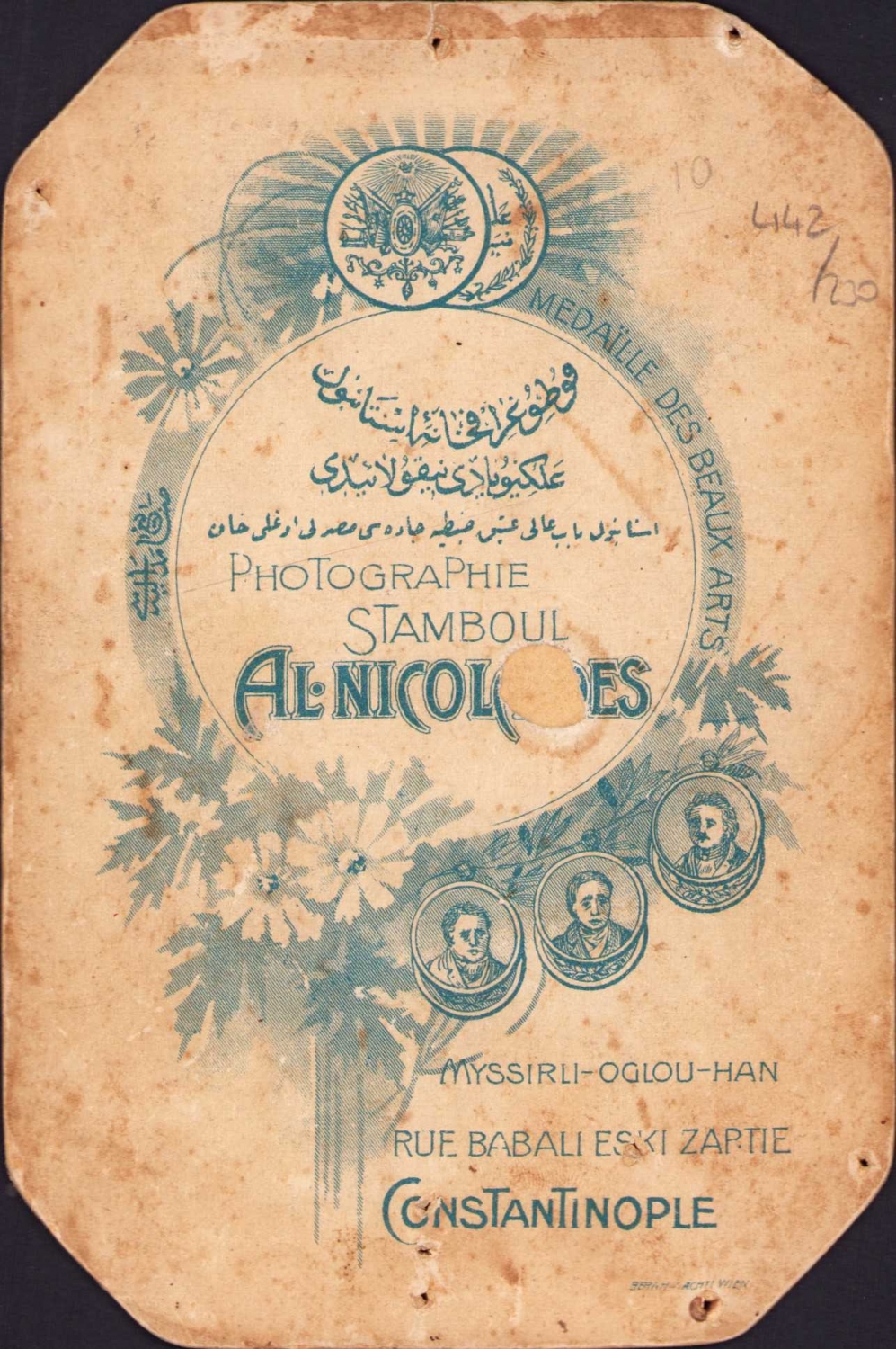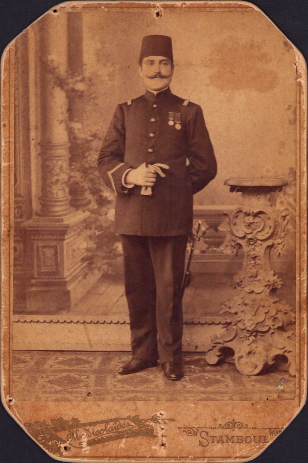 Al - Nicolaides kabin foto, madalyalı, kılıçlı Osmanlı subayı, kenarları kopuk,11x15 cm