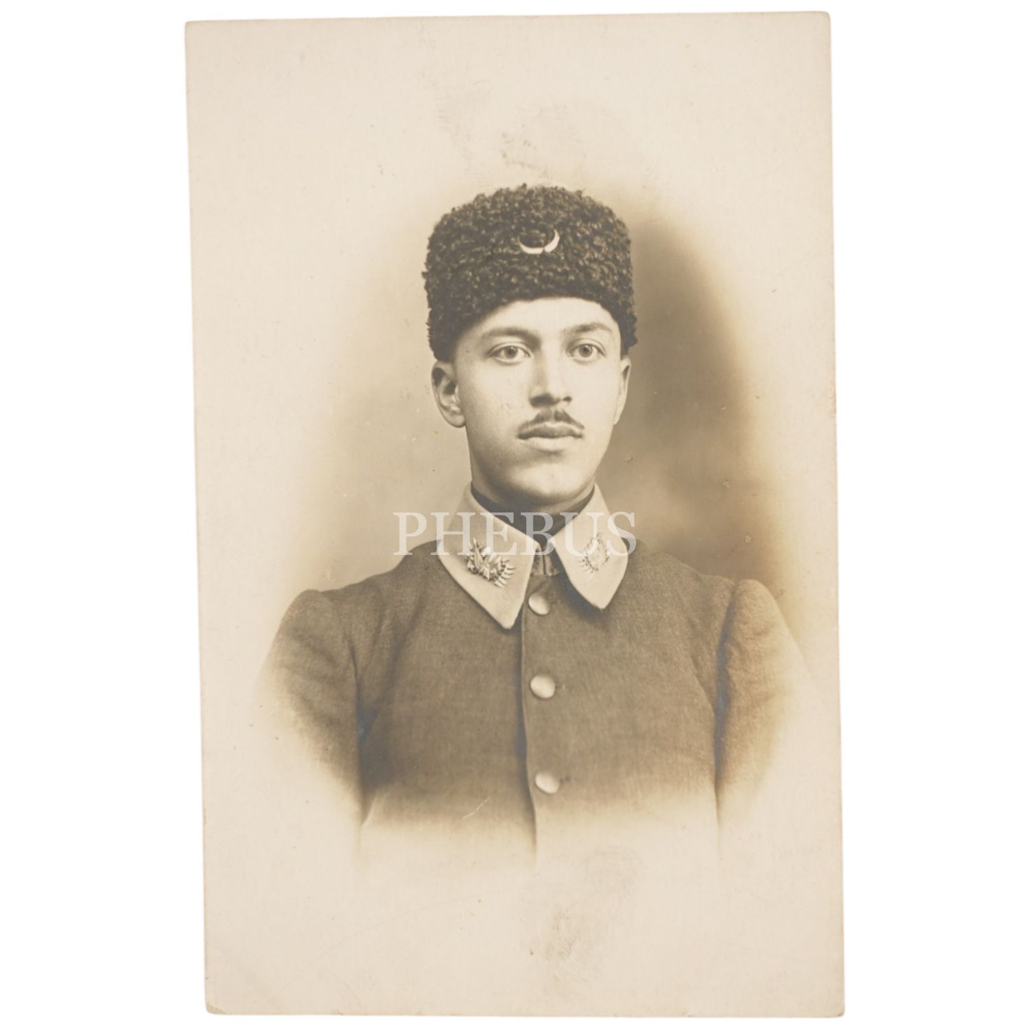 Hilal kalpaklı bir Osmanlı subayının Resne Fotoğrafhanesi´nde çektirdiği fotoğrafı, 9x14 cm...