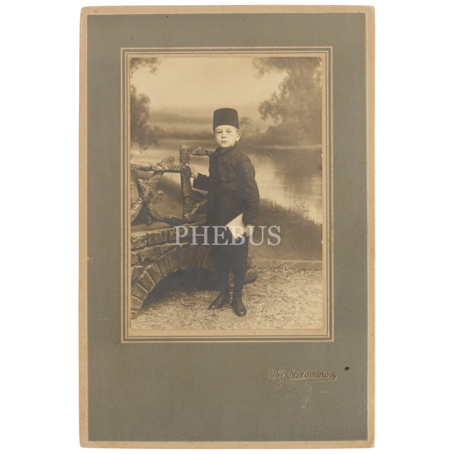 Bir Osmanlı talebesinin elinde kitabıyla Nicolas Andriomenos Fotoğrafhanesi´nde çektirdiği fotoğrafı, 16x23 cm..