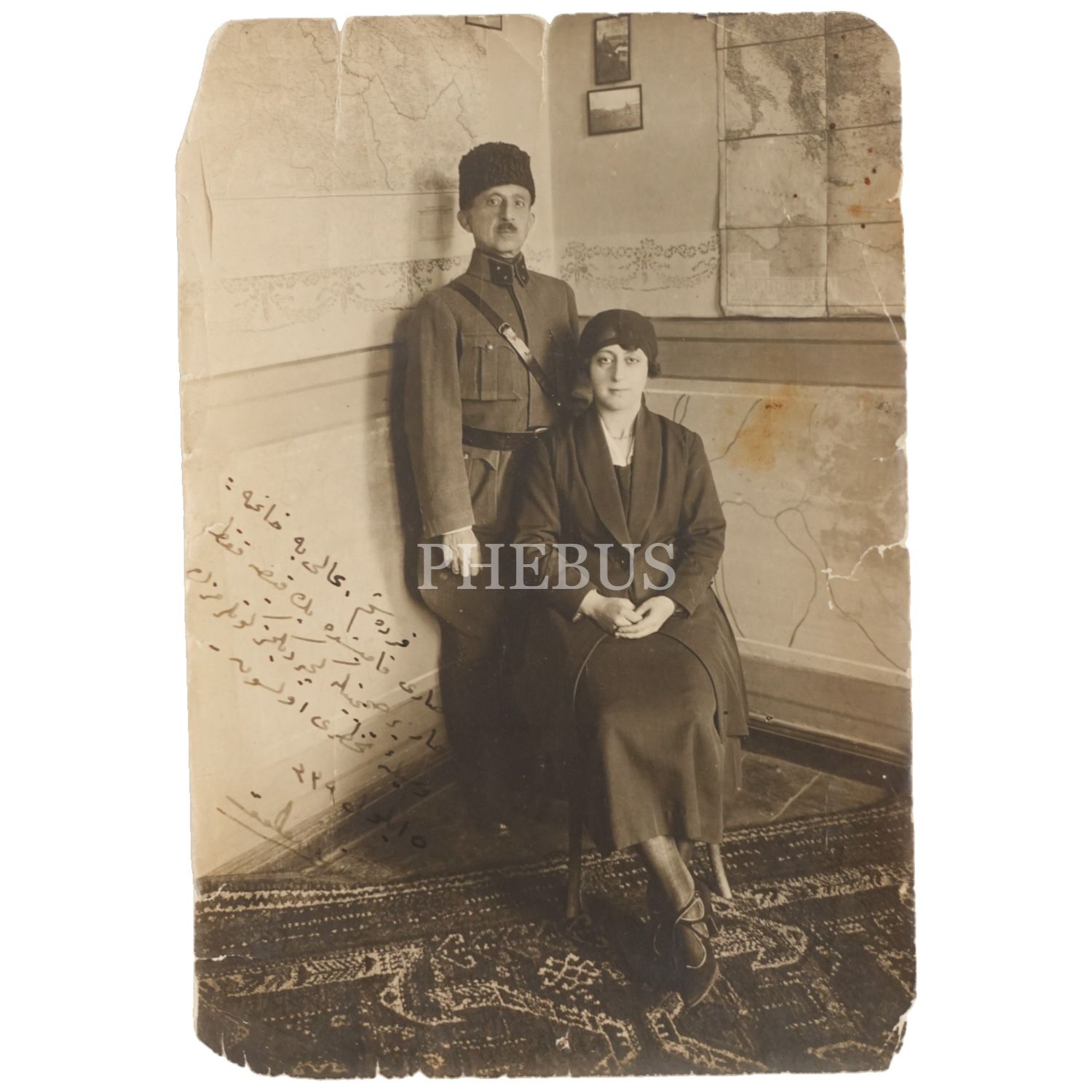 Bir Osmanlı subayının eşi ile birlikte çektirdiği hatıra fotoğrafı, 12x17 cm...