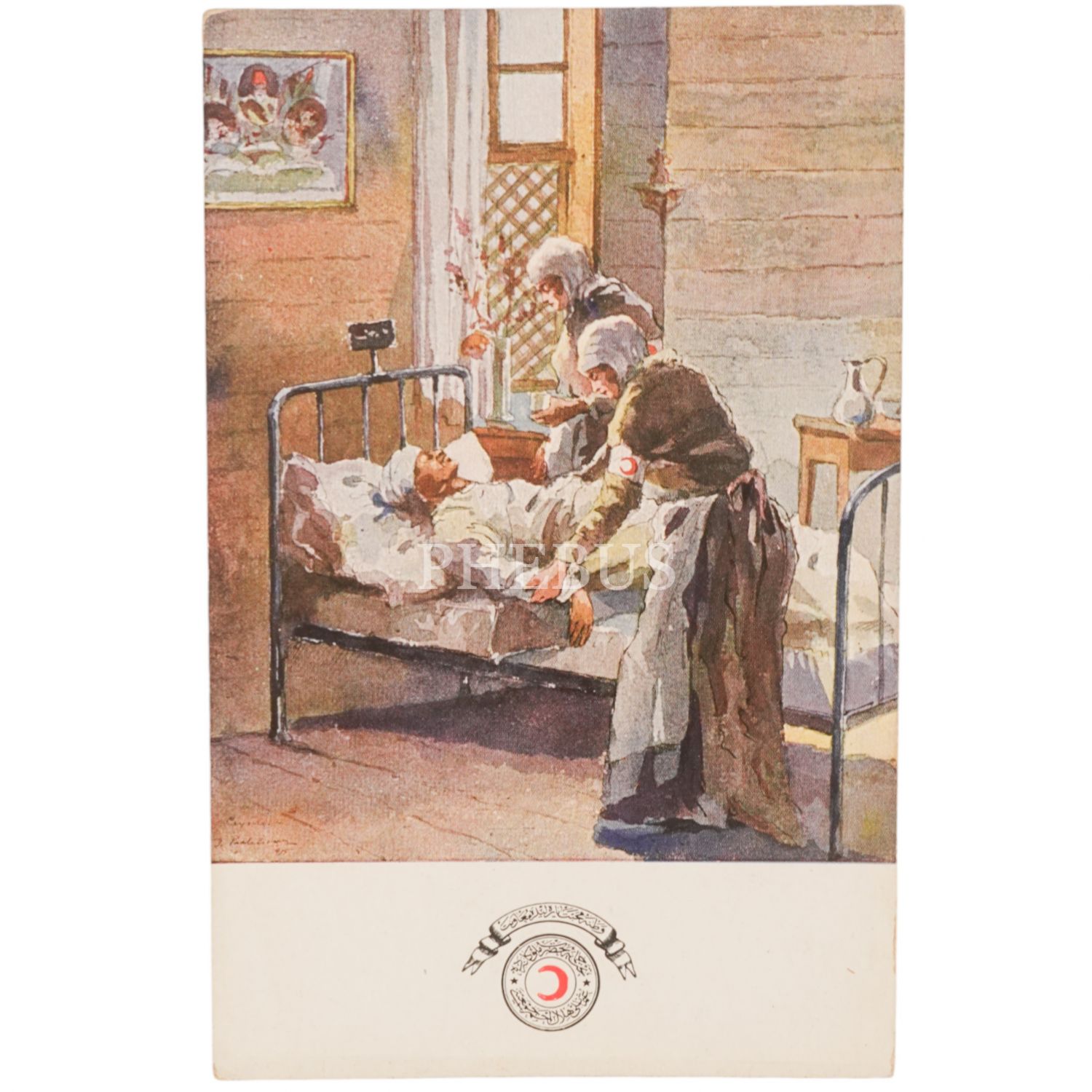 Yaralı askerlerle ilgilenen Hilal-i Ahmer hemşireleri, ed. Hilal-i Ahmer Cemiyeti, 9x14 cm...