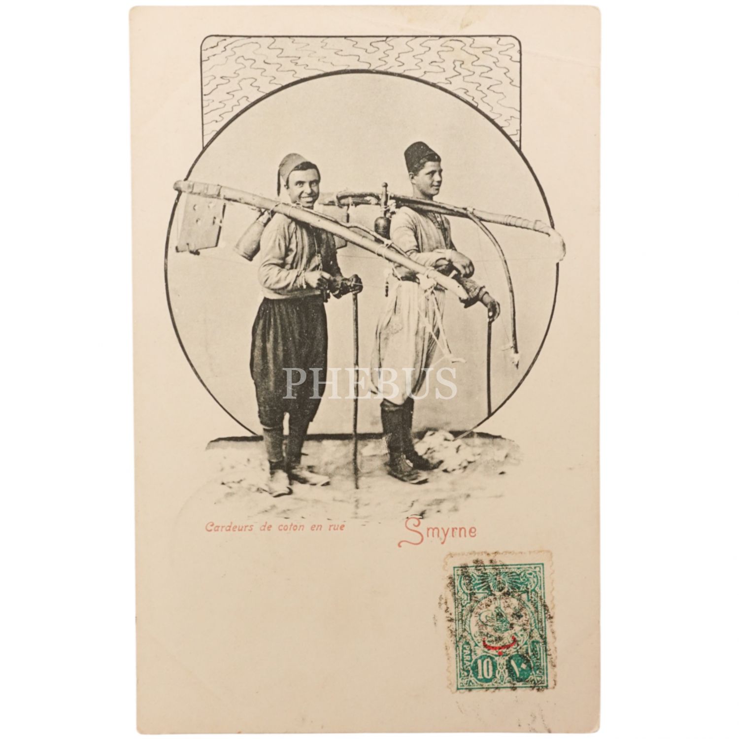 İzmir´de hamallar, "Caraeurs de coton en rue", 14x9 cm...