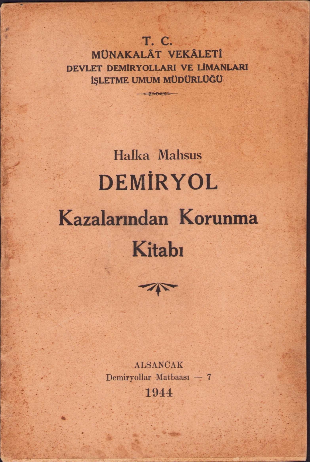 Halka Mahsus Demiryol Kazalarından Korunma Kitabı, Demiryollar Matbaası, Alsancak, 1944, resimli, 21 sayfa, 13x20 cm
