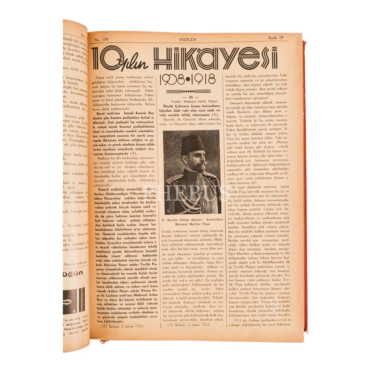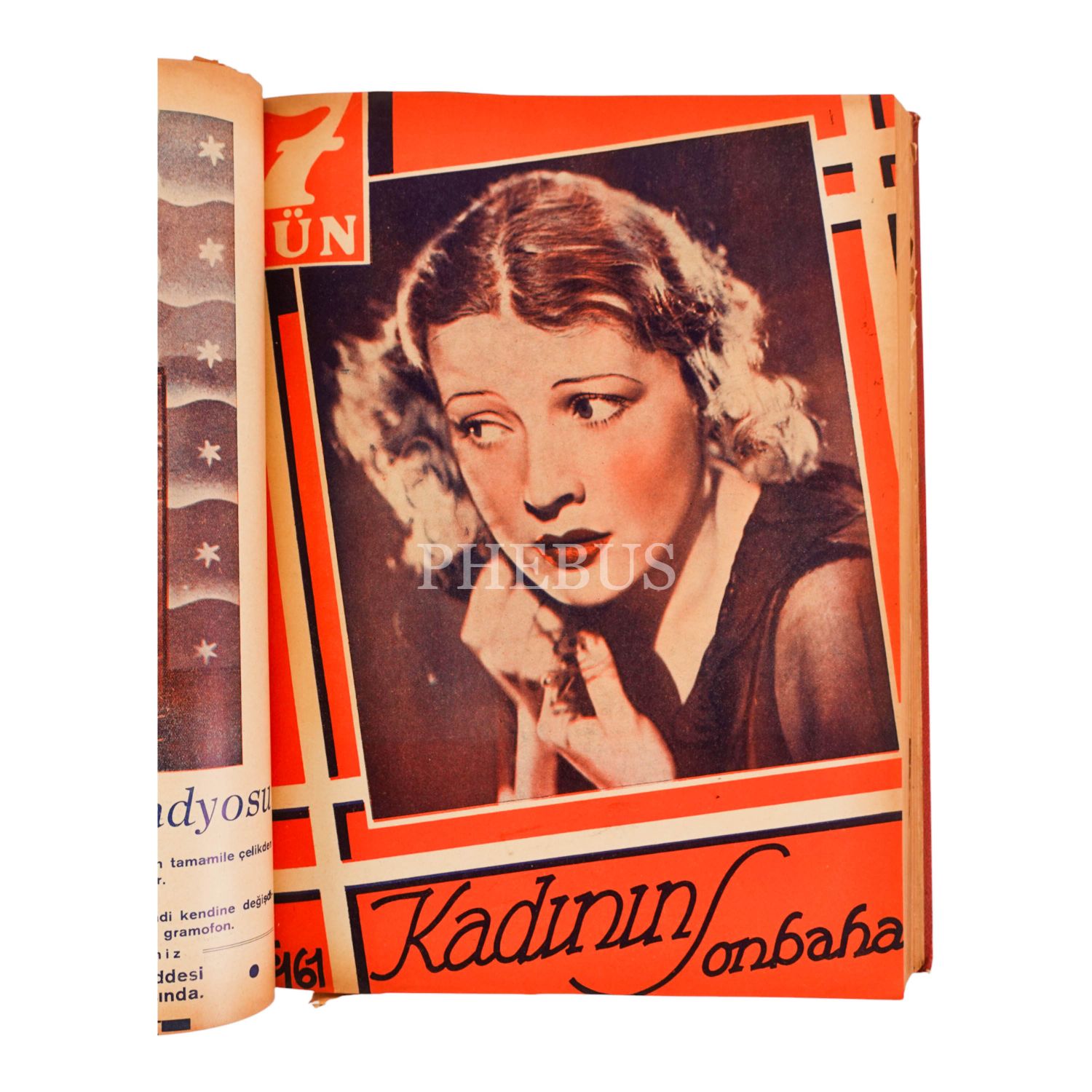 Kurucusu Sedat Simavi´den ithaflı ve imzalı YEDİGÜN dergisinin 11 Mart 1936 ila 2 Eylül 1936 tarihleri arasında yayımlanan 25 sayısı (157-182 arası), 24x33 cm...