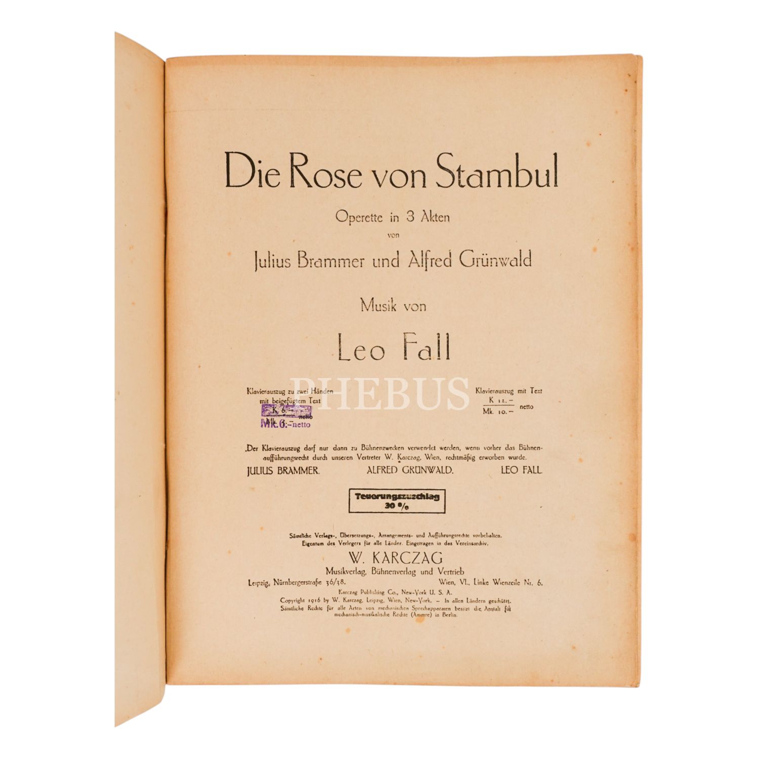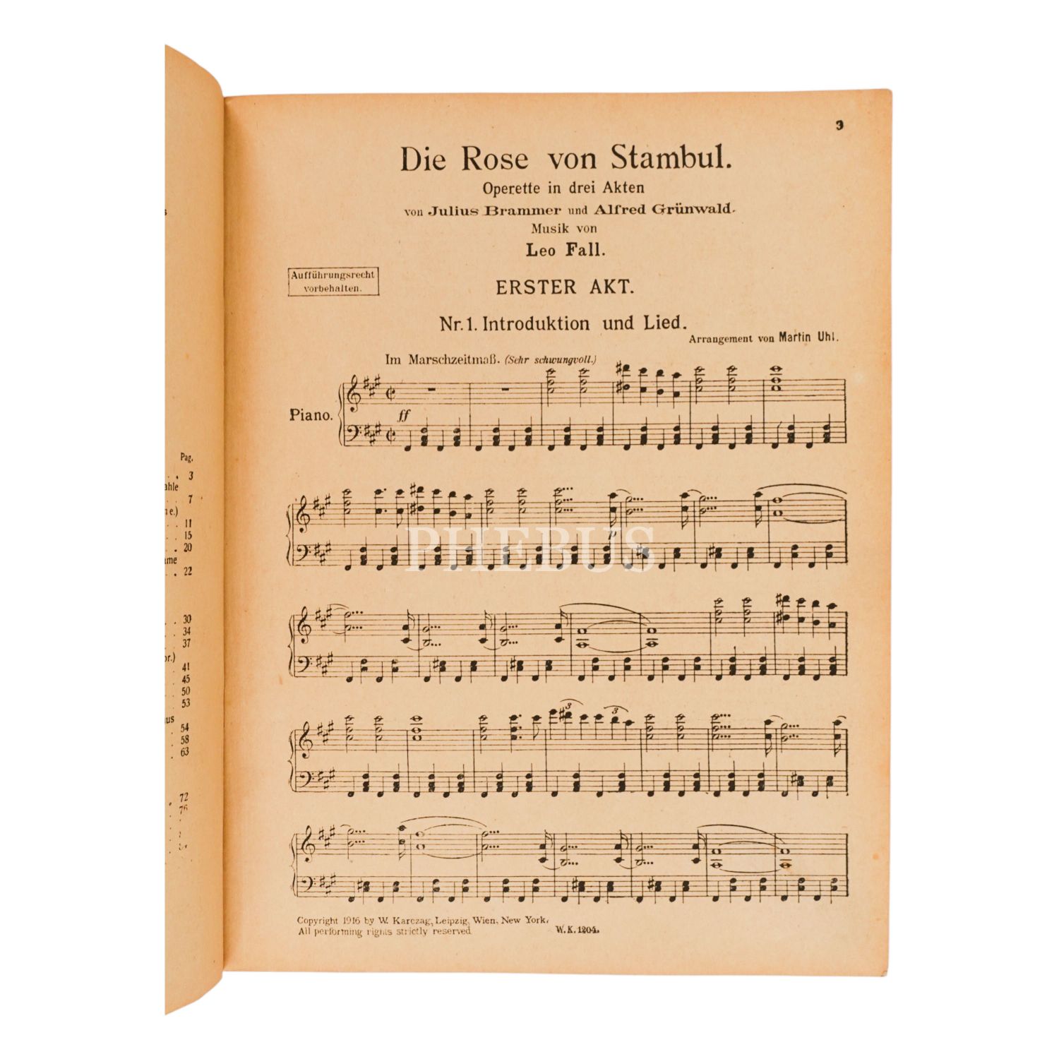 Eser, 20. yüzyılın başlarında yazılmış ünlü operet "Die Rose von Stambul"'un nadir bulunan orijinal partisyonunu içermektedir.