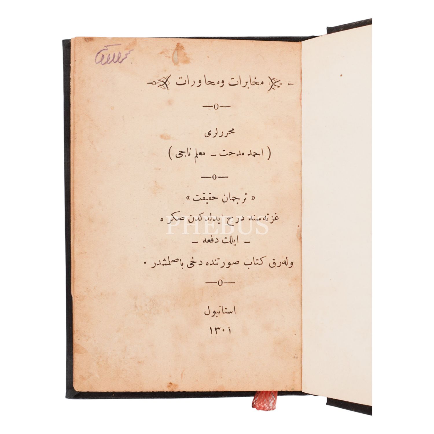 MUHÂBERÂT VE MUHÂVERÂT, Ahmed Midhat - Muallim Naci, 1301, 208 sayfa, 10x14 cm...