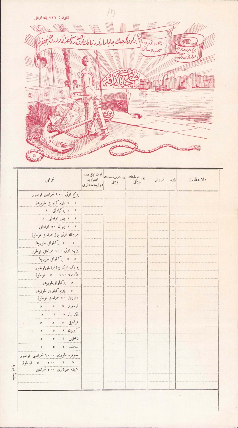 Osmanlıca Çapa Marka Fabrikası antetli fatura, Matbaa-i Bahriye, 20x36 cm