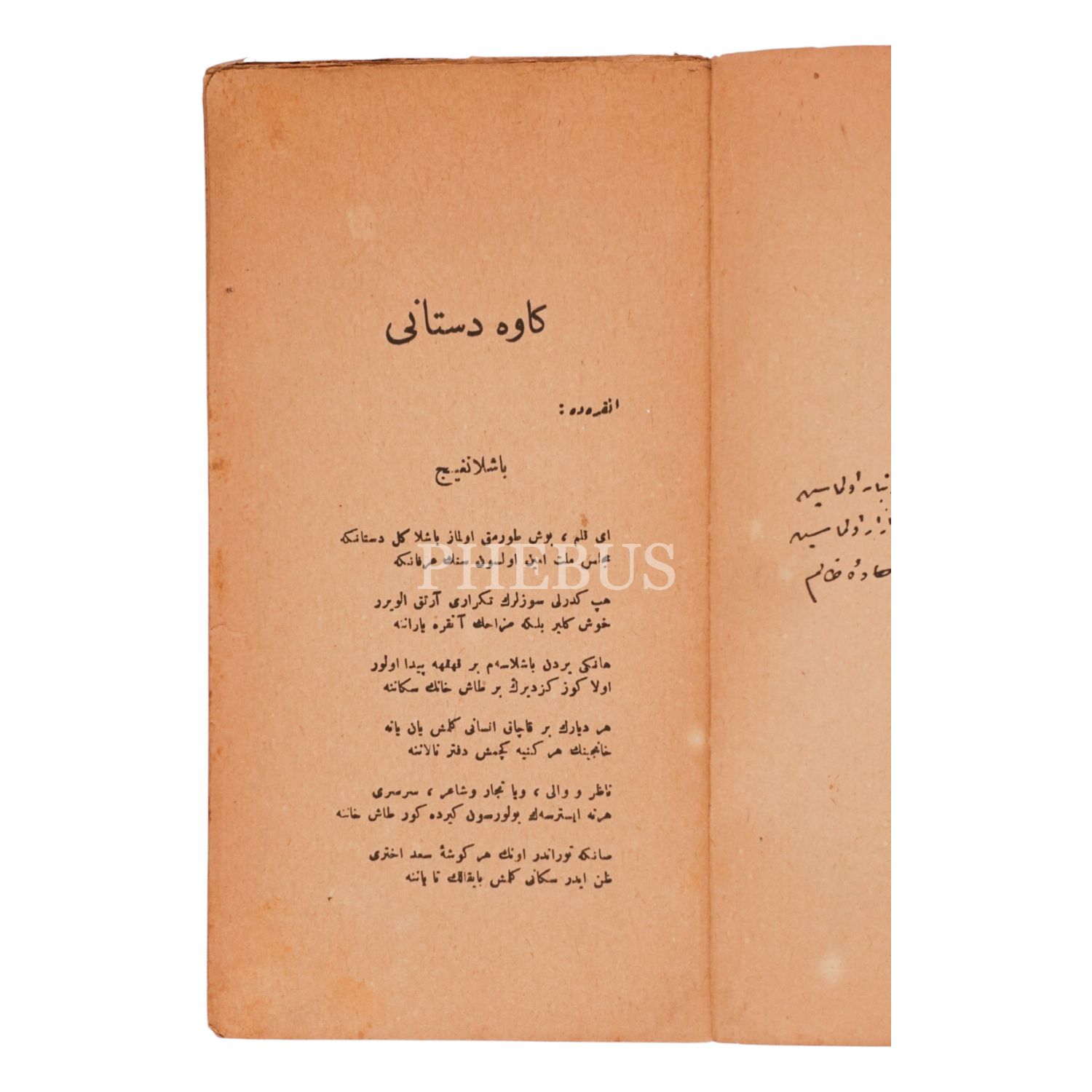 Hüseyin Suat Yalçın´ın sert eleştiriler içeren şiir kitabı. *Sırtı sağ taraftan cildinden ayrıktır. Bazı formaları ciltten ayrıdır.