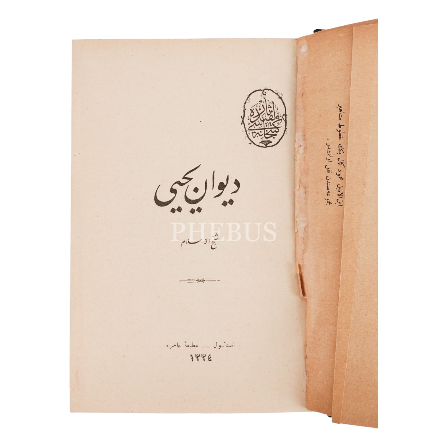 DÎVÂN-I YAHYÂ, Şeyhülislam Yahya Efendi, Matbaa-i Âmire, 1334, 334 sayfa, 13x19 cm...