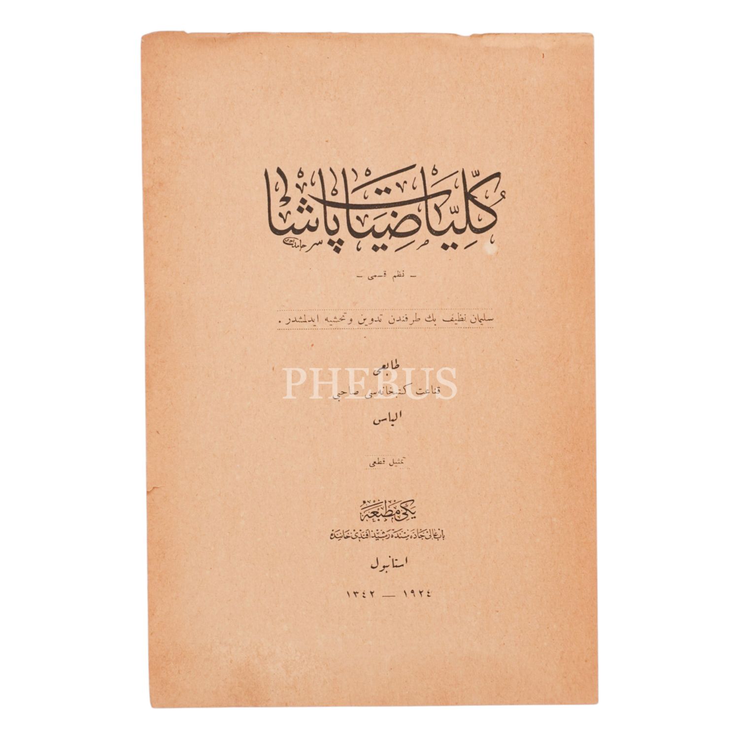 KÜLLİYÂT-I ZİYÂ PAŞA (NAZIM KISMI), Haz.: Süleyman Nazif, Yeni Matbaa, 304 sayfa, 13x20 cm...