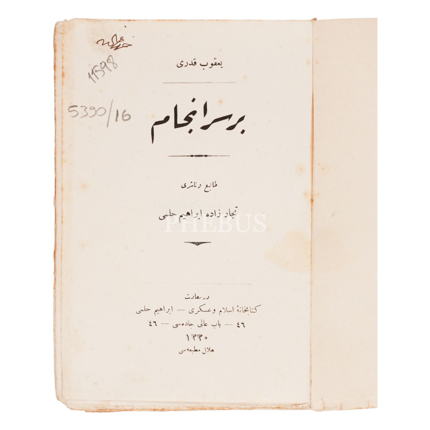 BİR SERENCAM, Yakup Kadri, Hilal Matbaası, 1330, 277 sayfa, 13x19 cm...