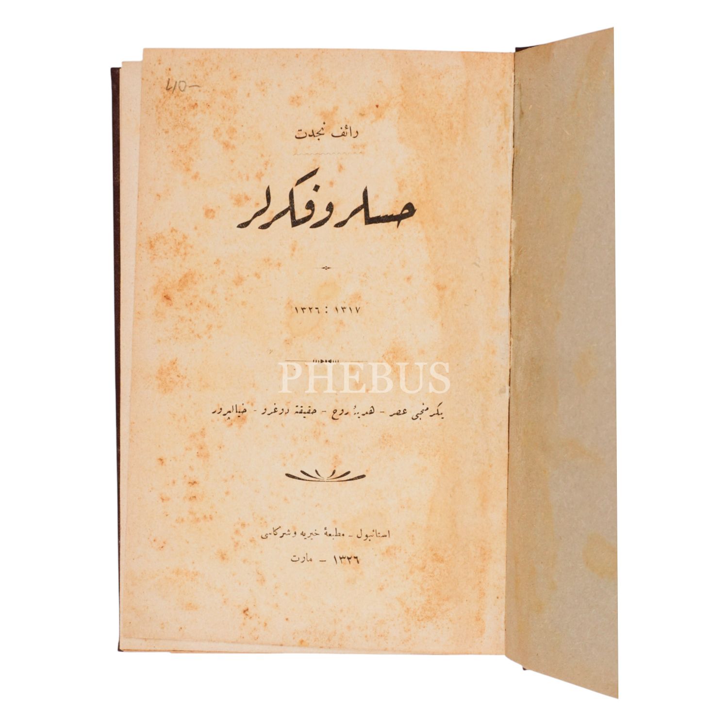 HİSLER VE FİKİRLER, Raif Necdet Kestelli, Matbaa-i Hayriye, 1326,