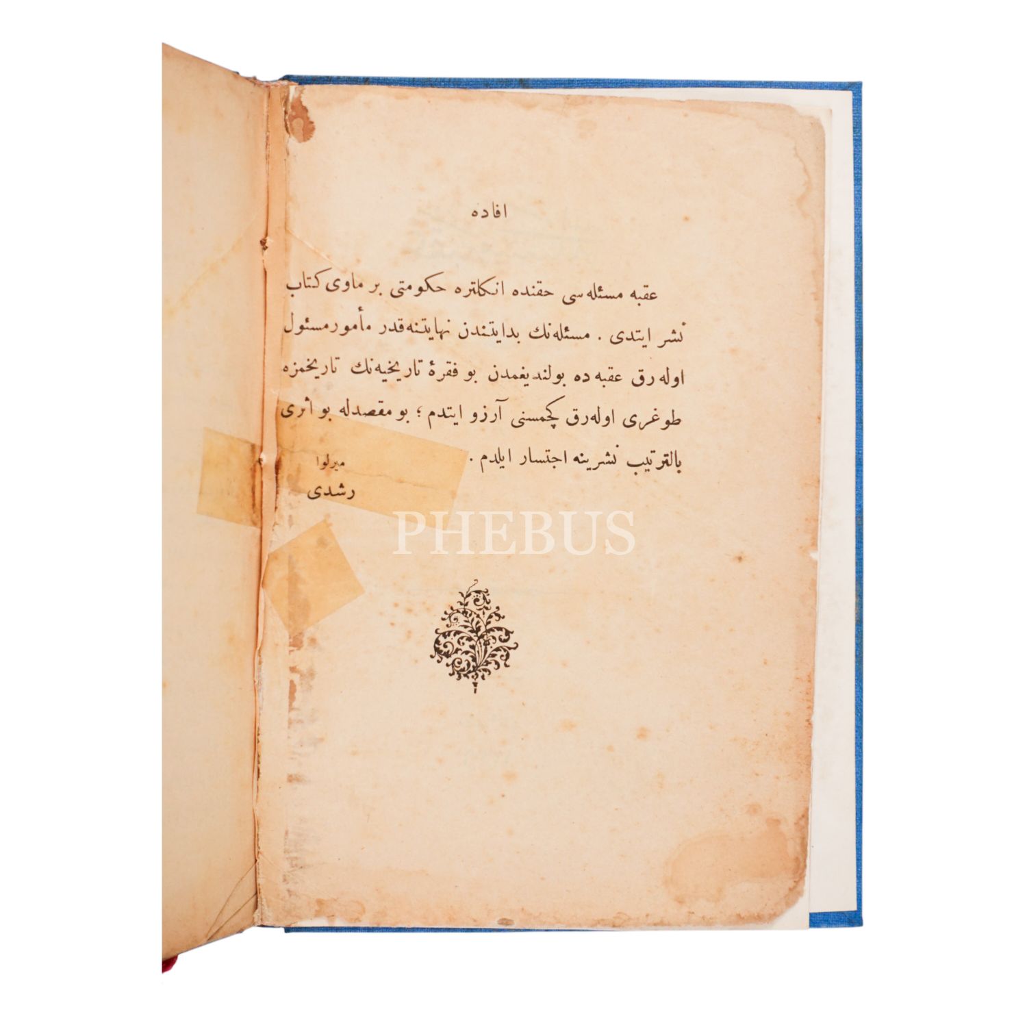 İngiliz Hükümetinin "Akabe Meselesi" üzerine bir "Mavi Kitap" yayınlaması üzerine, bu meselenin başından sonuna değin Akabe´de görevli olan, Akabe ve Tâbe gibi yerleri geri alan Rüşdü Bey´in "tarihimizin doğru anlaşılması" maksadıyla kaleme aldığı eser.