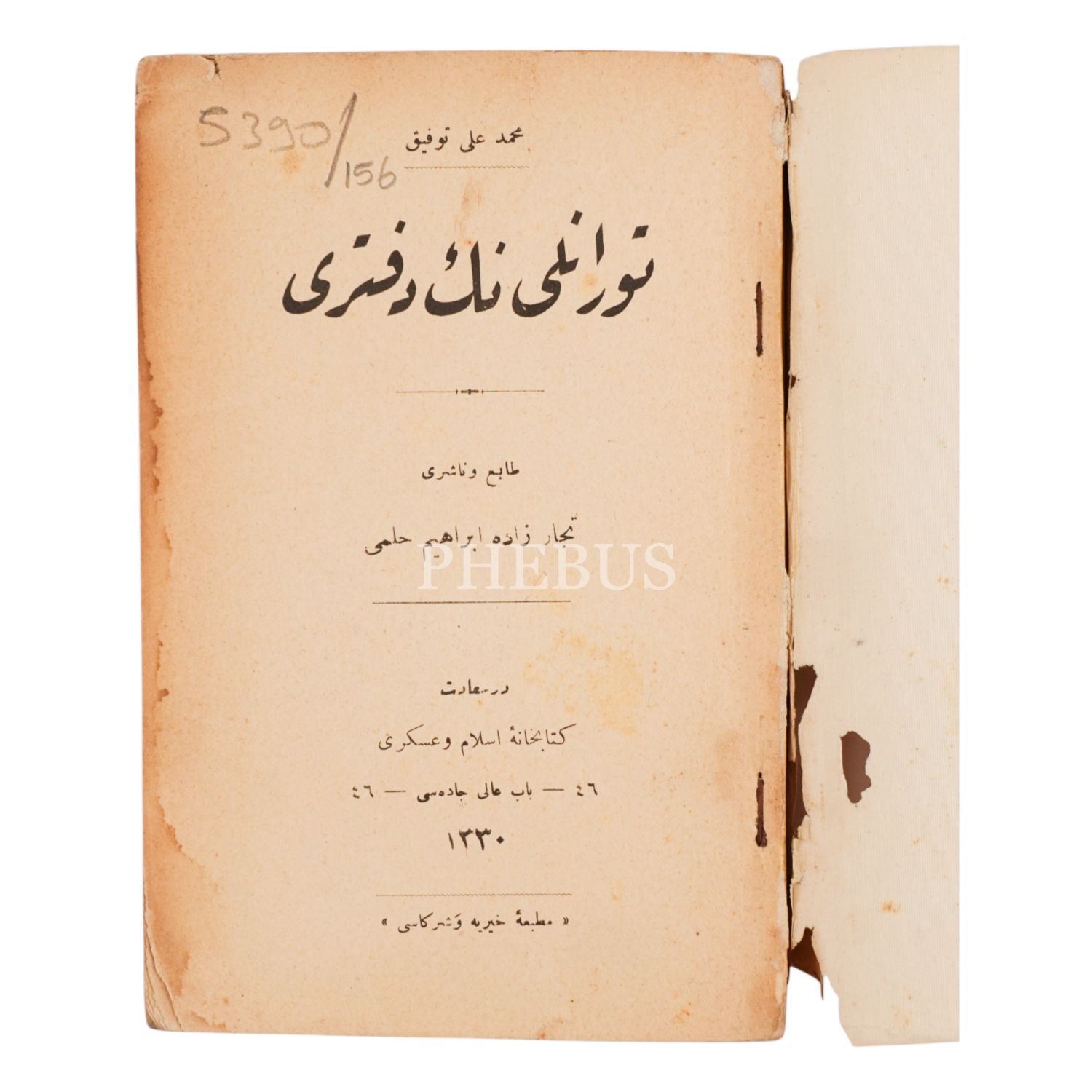 TURANLININ DEFTERİ, Mehmed Ali Tevfik, Matbaa-i Hayriye, 1330, 156 sayfa, 12x18 cm...