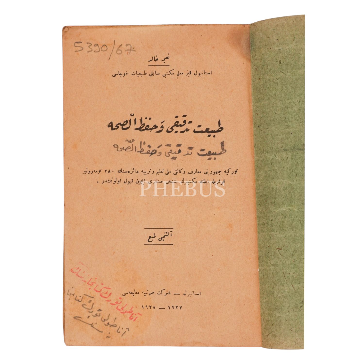 TABİAT TEDKÎKİ VE HIFZISSIHHA, Naime Halid, 1927-28, Şirket-i Mürettibiye Matbaası, 96 sayfa, 13x20 cm...