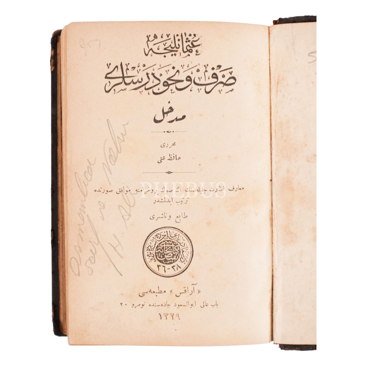 OSMANLICA SARF VE NAHİV DERSLERİ, Hâfız Ali, Araks Matbaası, 1329, 226 sayfa, 13x17 cm...
