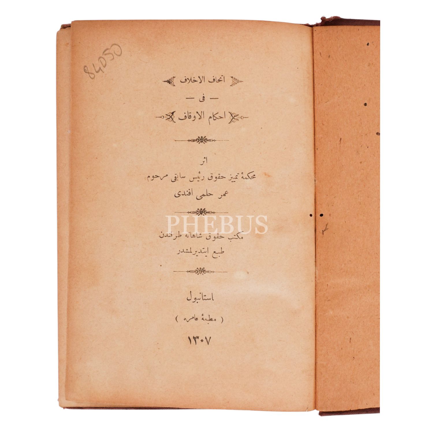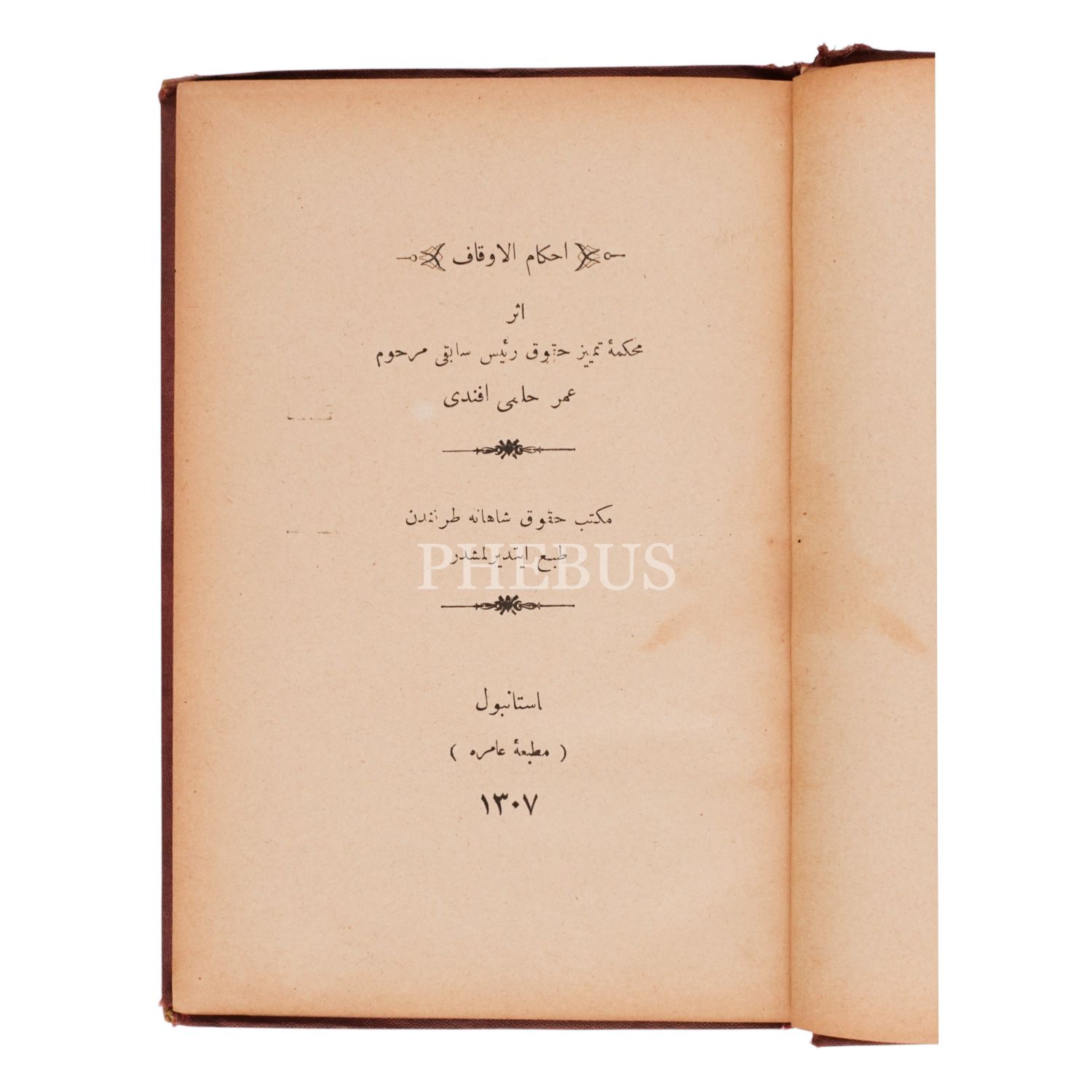 AHKÂMÜ´L-EVKÂF, Ömer Hilmi Efendi, Matbaa-i Âmire, 1307, 231 sayfa, 14x21 cm...
