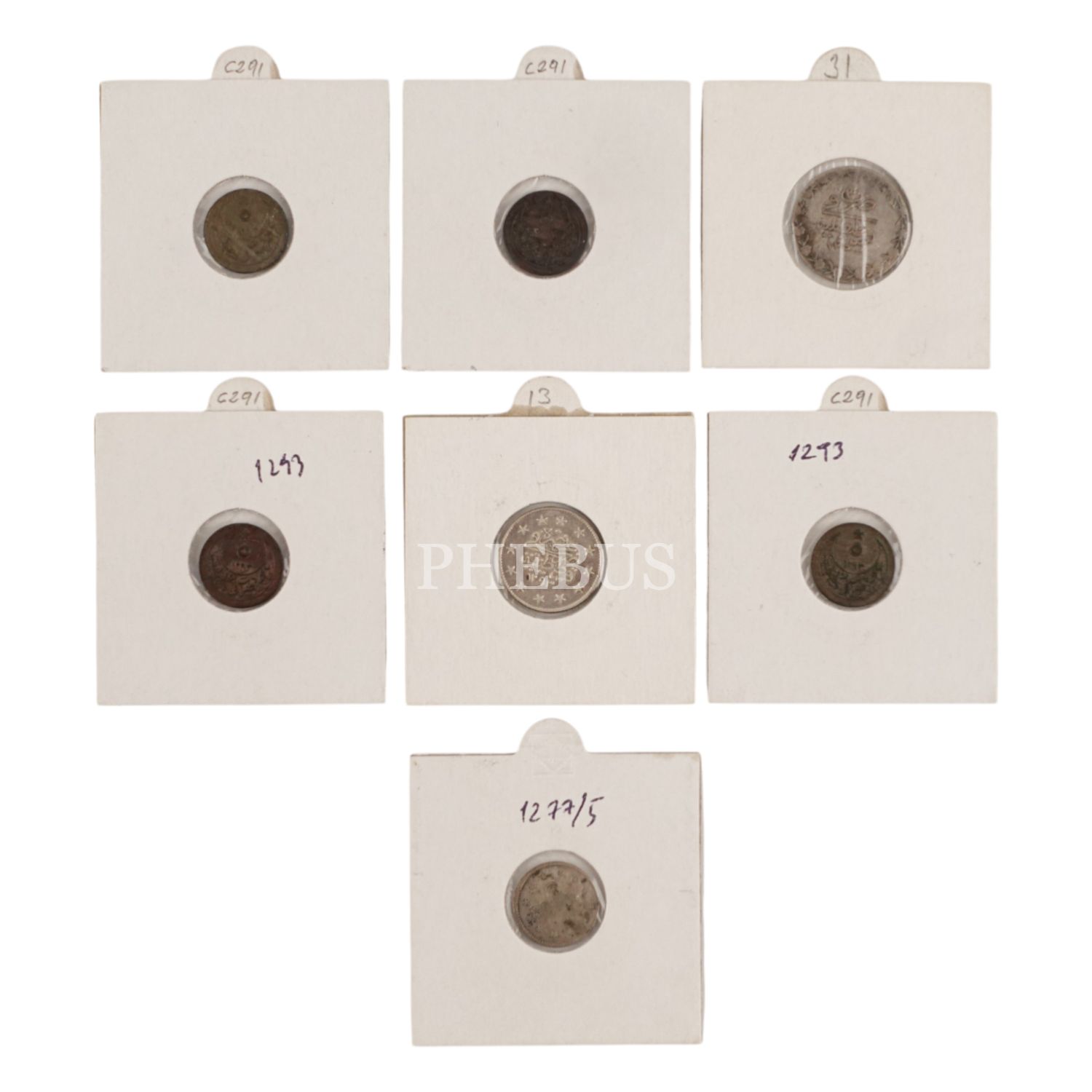 7 adet Abülmecid, Abdülaziz ve II. Abdülhamid madeni para lotu...