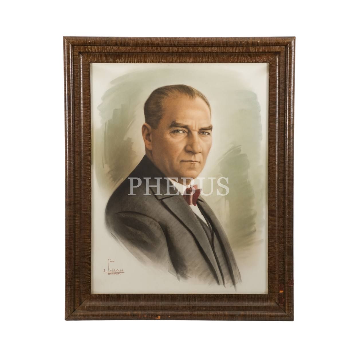 Mustafa Kemal Atatürk´ün, "Foto Sebah - Beyoğlu" kaşeli, elle renklendirilmiş portresi, 68x84 cm...