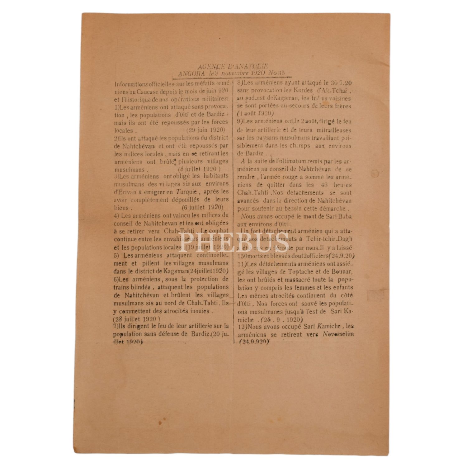 7. Anadolu Ajansı´nın 9 Kasım 1920 tarihinde yayımlanan İngilizce sayısı