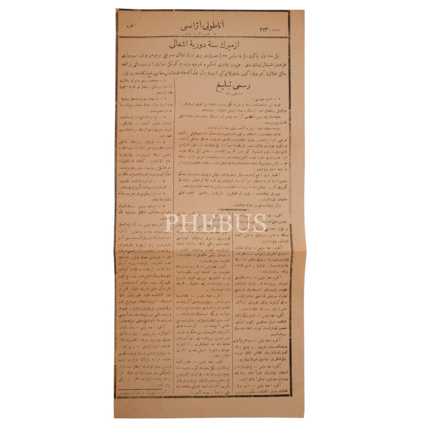9. Anadolu Ajansı´nın 9 Temmuz 1337 tarihinde yayımlanan, Milli Mücadele´nin safahatından haber veren sayısı