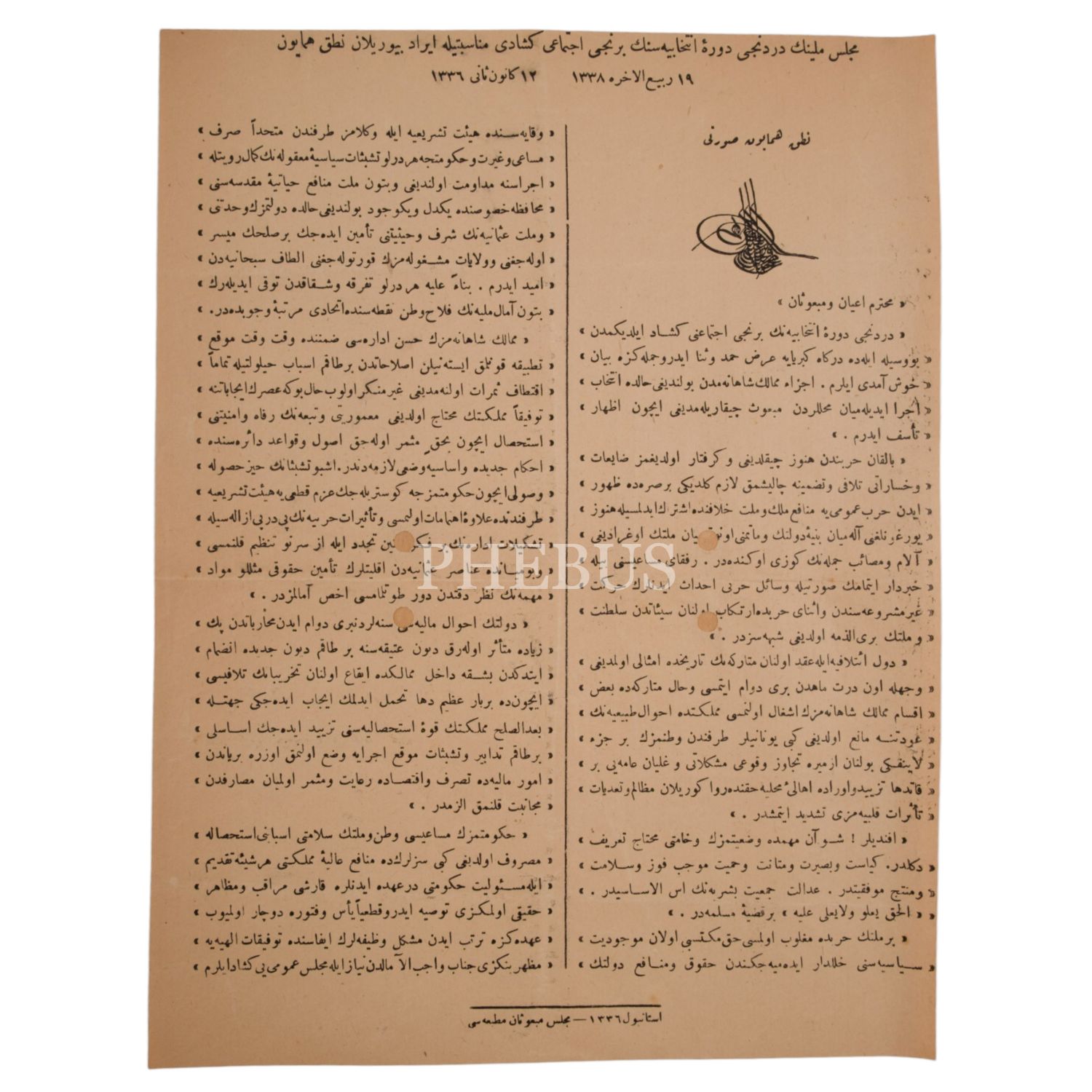 12. Sultan Mehmed Vahideddin´in, 12 Kanunisani 1336 tarihinde Meclis-i Mebusan´da Birinci Cihan Harbi hakkında irad ettiği nutku