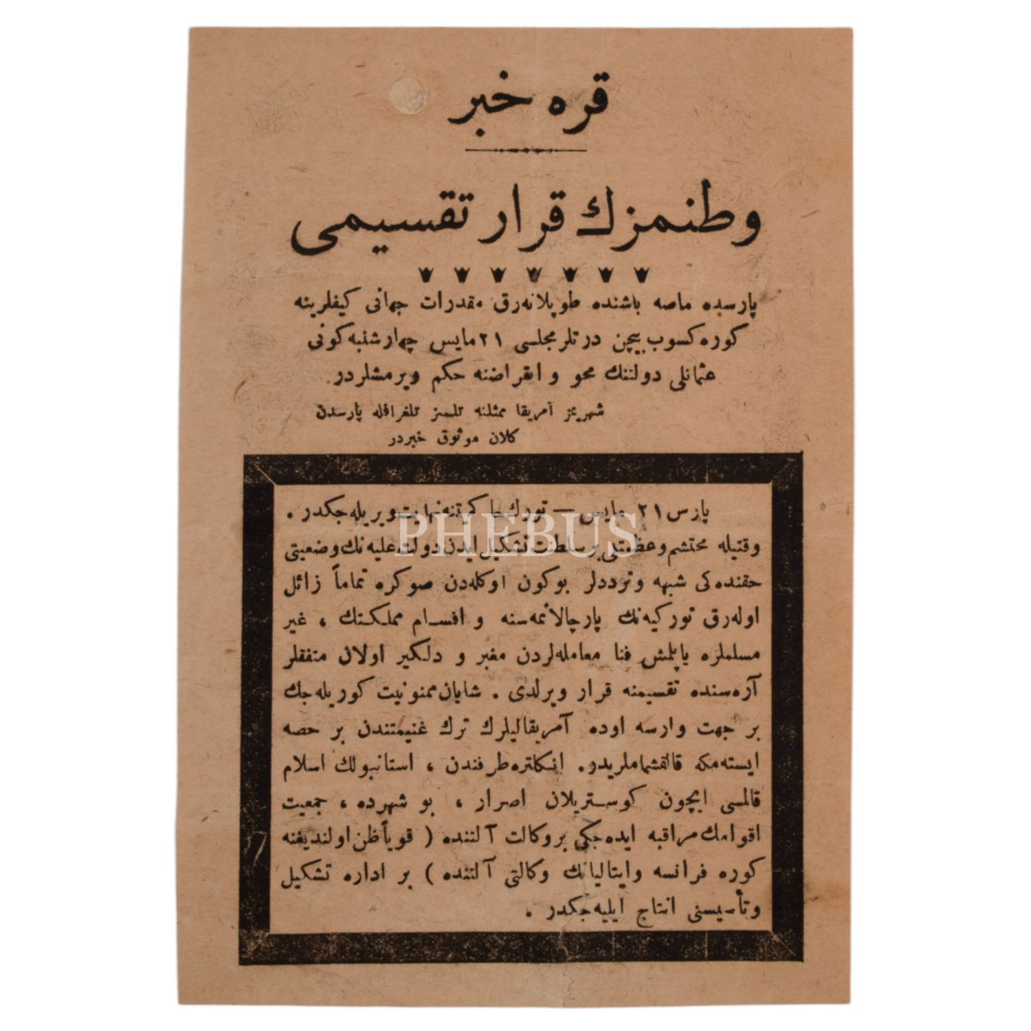 2. "Kara Haber" başlıklı, Türk vatanının İtilaf devletleri arasında pay edildiğine ve Osmanlı´da Türk hakimiyetine son verileceğine dair Paris´te bir gazetede yayımlanan bir haberin yer aldığı bildiri