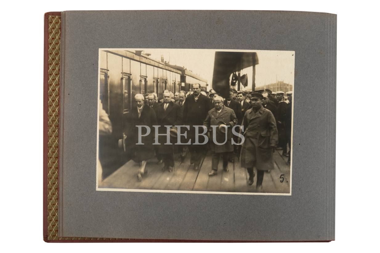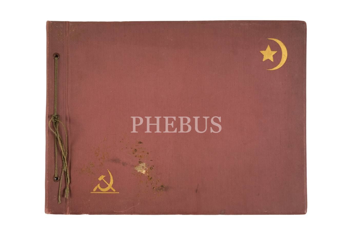 İsmet İnönü´nün 1932 yılında gerçekleştirdiği Sovyet Rusya ziyaretinden 22 adet fotoğraf içeren, ay yıldız ve orak çekiç desenli albüm, 37x27 cm...