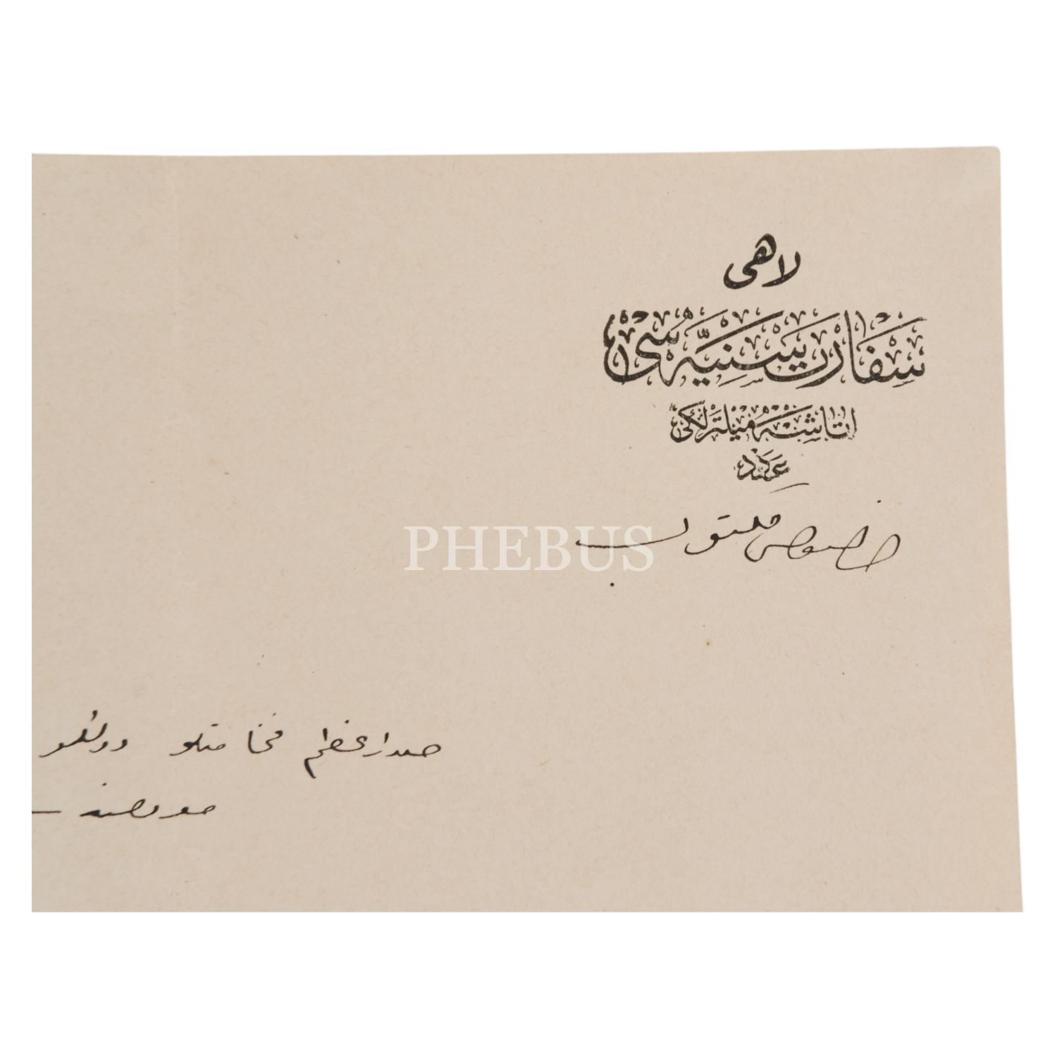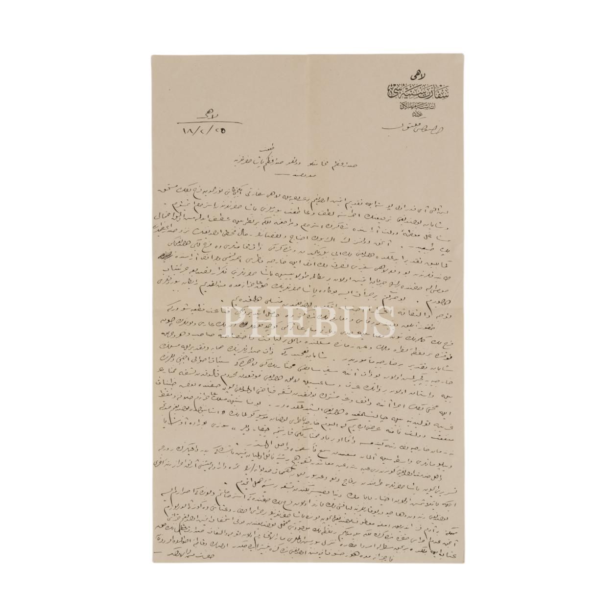 Lahey Sefaret-i Seniyyesi Ateşemiliterliği antetli kağıt üzerine, dönemin Lahey Ateşemiliteri Nuri Conker tarafından, Sadrazam Talat Paşa´ya hitaben kaleme alınmış mektup, 1917, 20x33 cm...