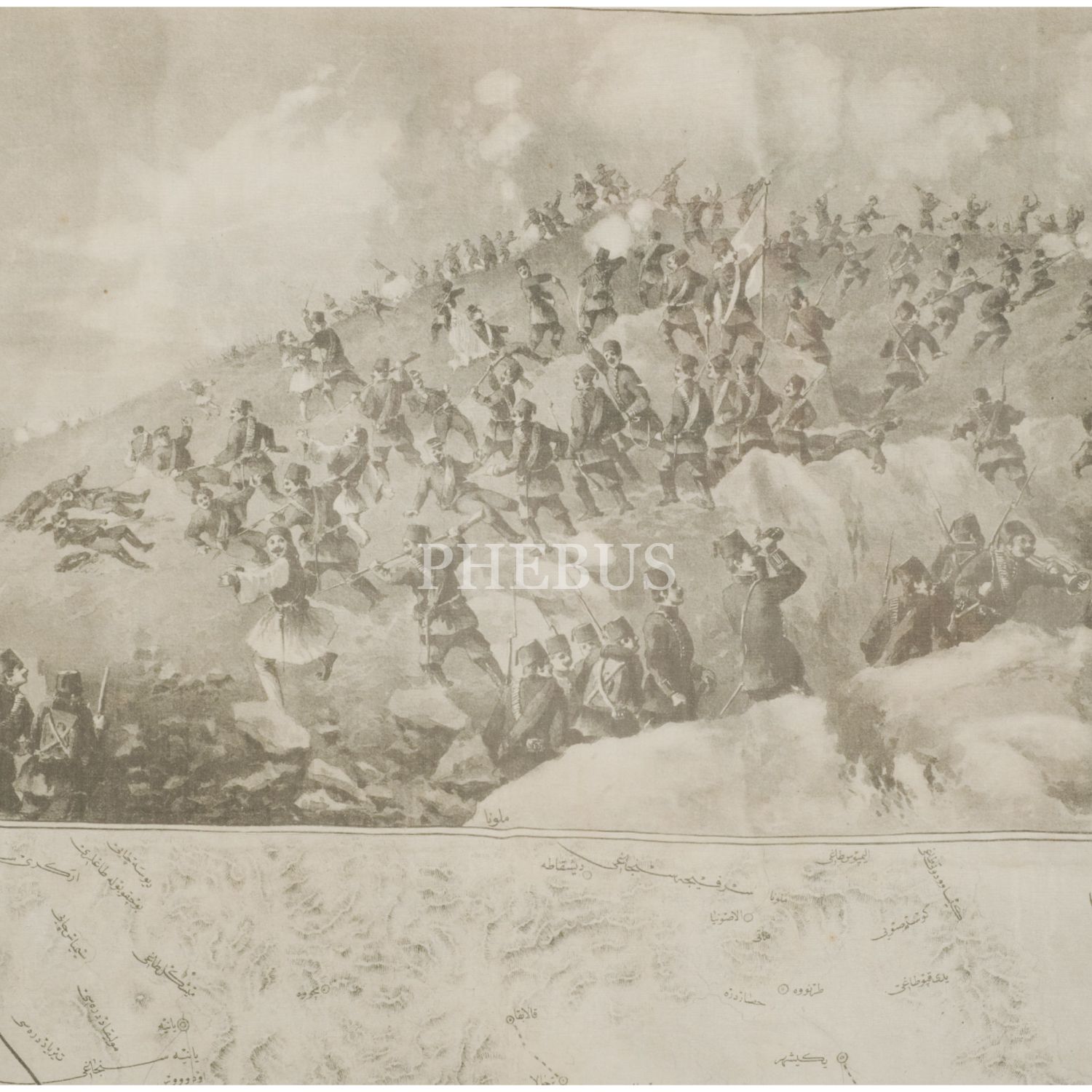 Osmanlı-Yunan Harbi temalı hatıra mendil, 44x44 cm...