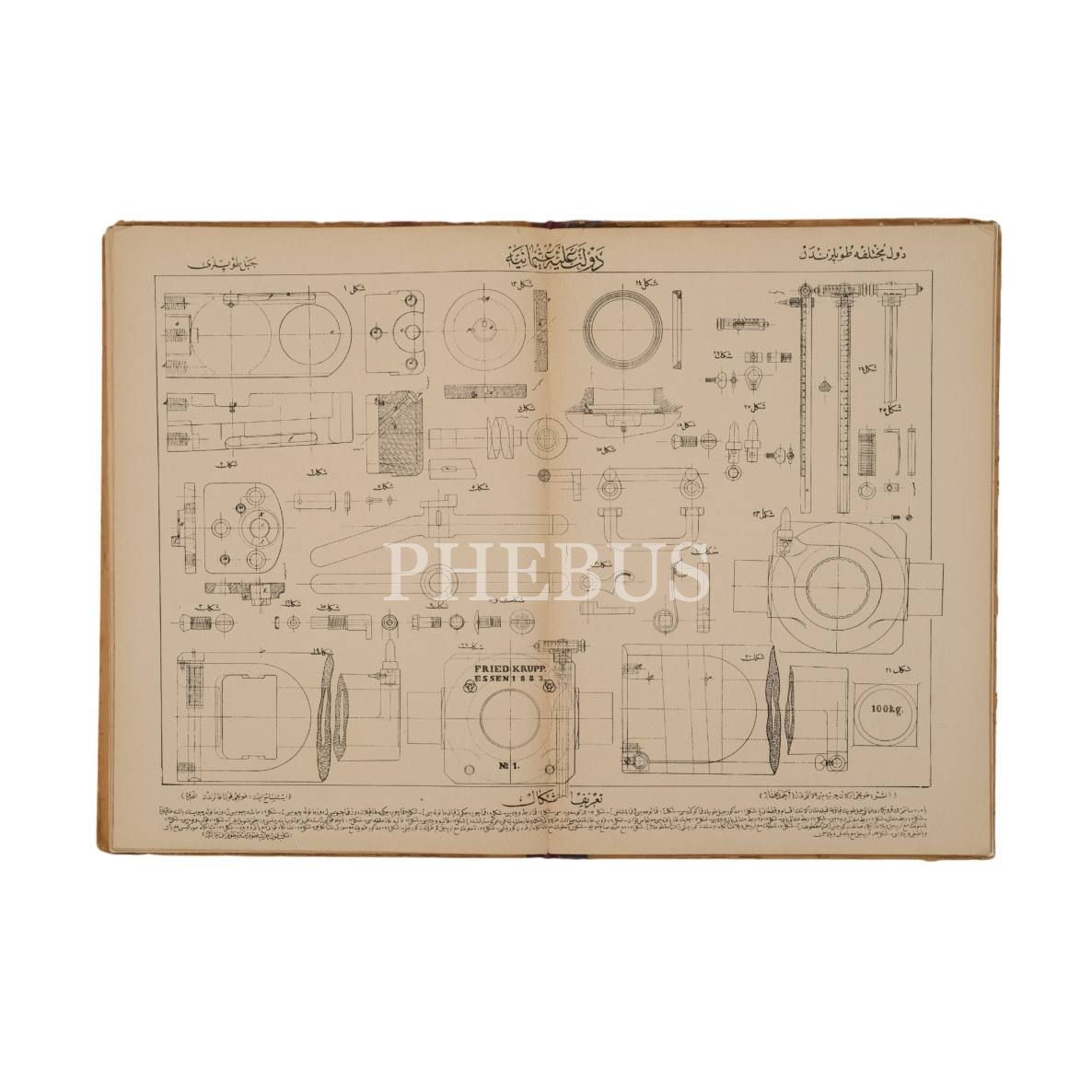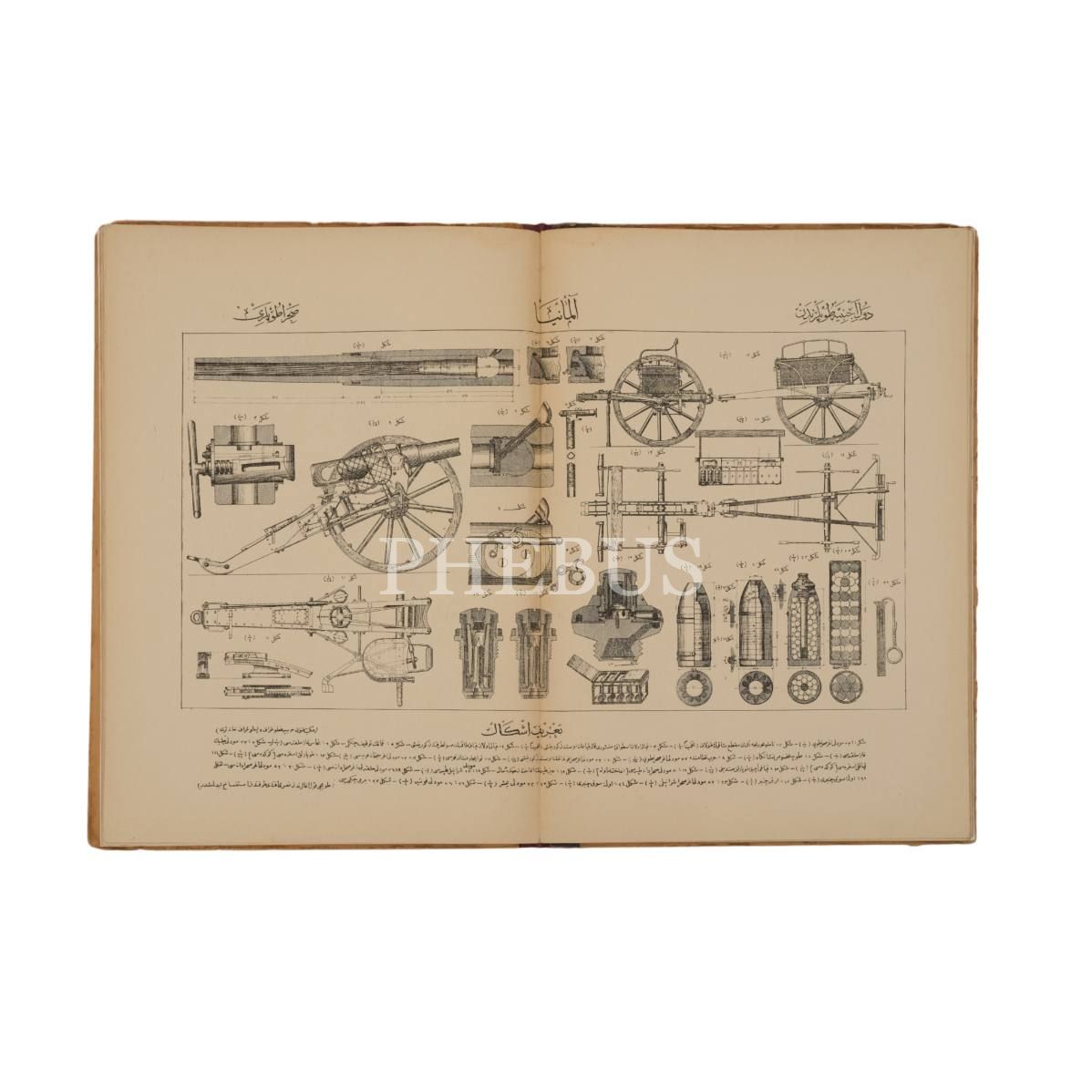 AVRUPA ORDULARININ 1315 SENE-İ HİCRİYESİNDE SAHRA VE CEBEL TOPLARI ALBÜMÜ, Ahmet Muhtar, Pangaltı Mekteb-i Fünun-u Harbiye Matbaası, 1313, 28x40 cm...