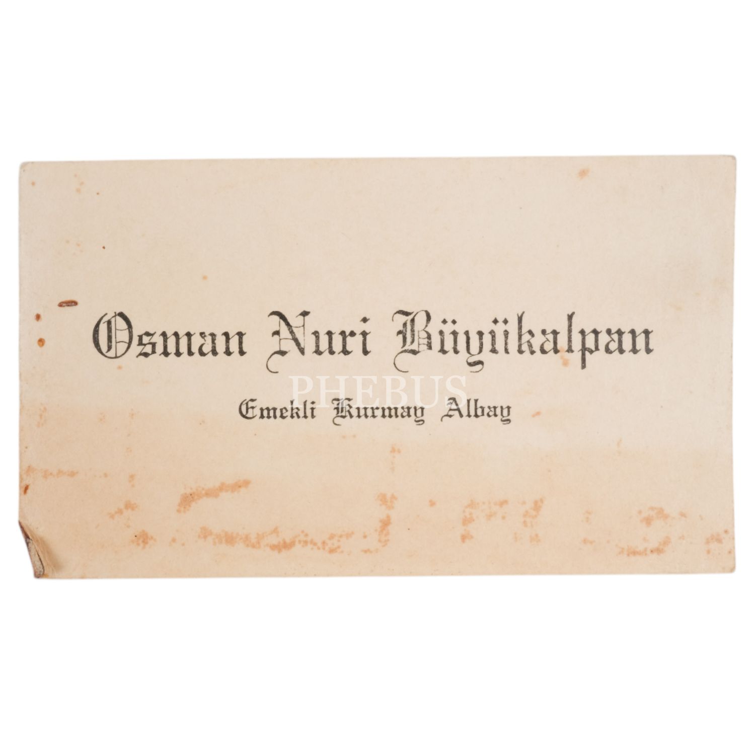 Milli Mücadele´de Kastamonu ve havalisi komutanlığını yürütmüş Osman Nuri Büyükalpan´ın, Milli Mücadele yıllarında Mustafa Kemal Atatürk ve diğer komutanlarla, erken Cumhuriyet döneminde görev aldığı birliklerdeki subaylarla çekilmiş fotoğrafları ve kartvizitinin yer aldığı terekesi...