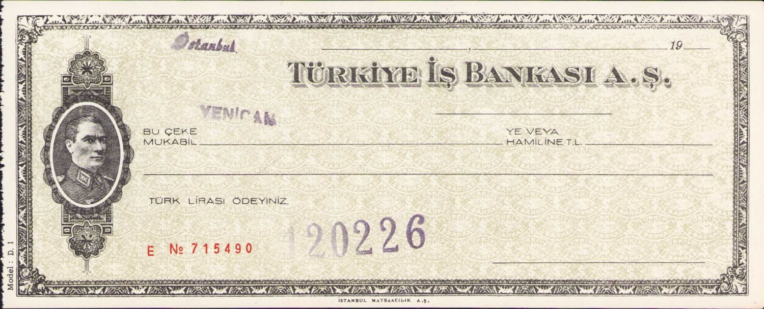Türkiye İş Bankası çek, Atatürk görselli, 21x8