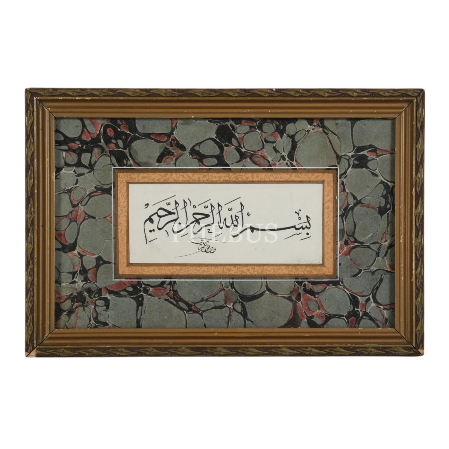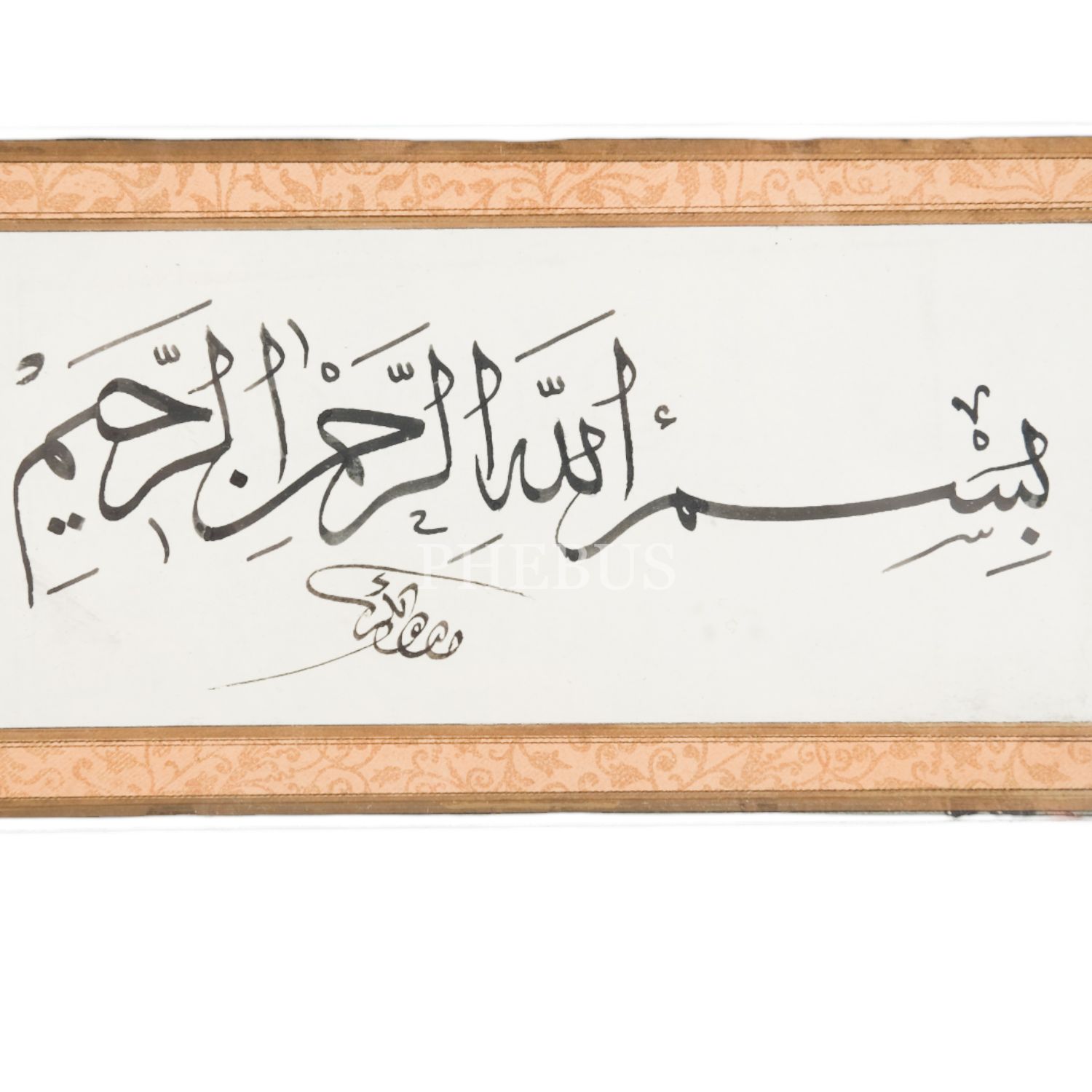 Bekir (Pekten) ketebeli tevkî besmele, yazı ölçü: 15x6 cm, çerçeve içi ölçü: 26x16 cm...