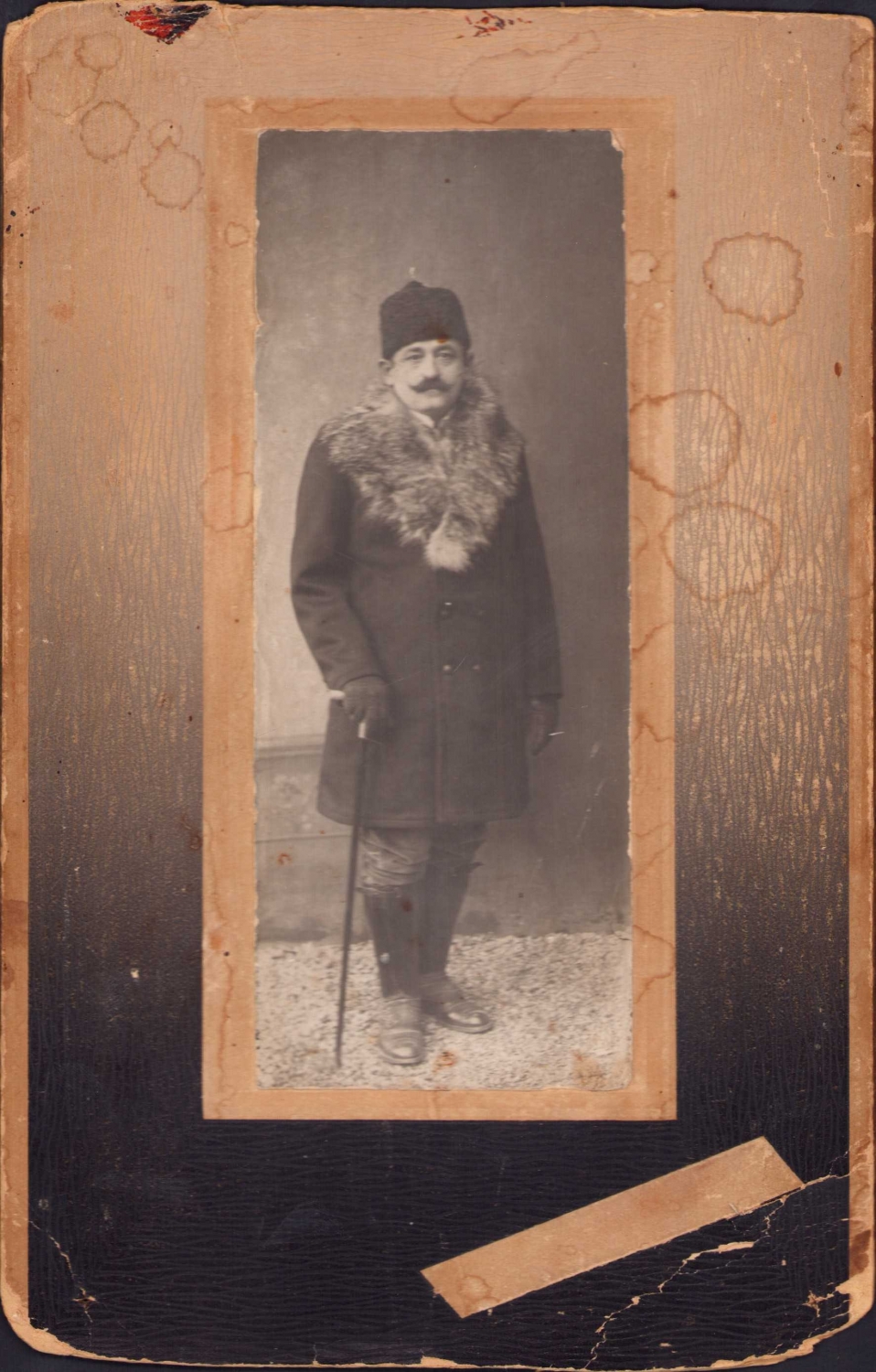 Kalpaklı bastonlu Osmanlı tip, arkası ithaflı, 6x16 cm