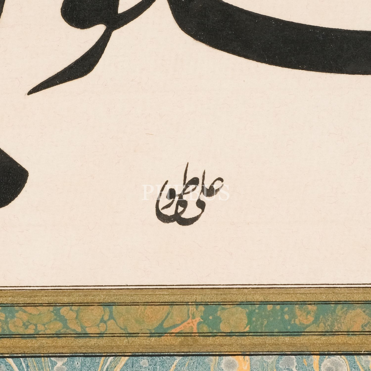 Ali Toy ketebeli celi talik levha, 1409 tarihli (m.1988), yazı: 33 cm, çerçeve ölçü: 55x34 cm...