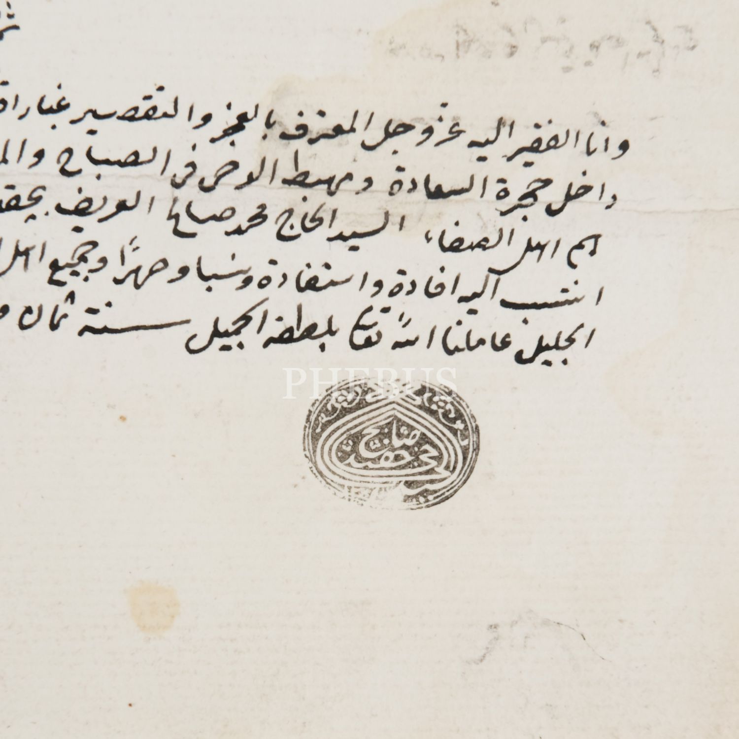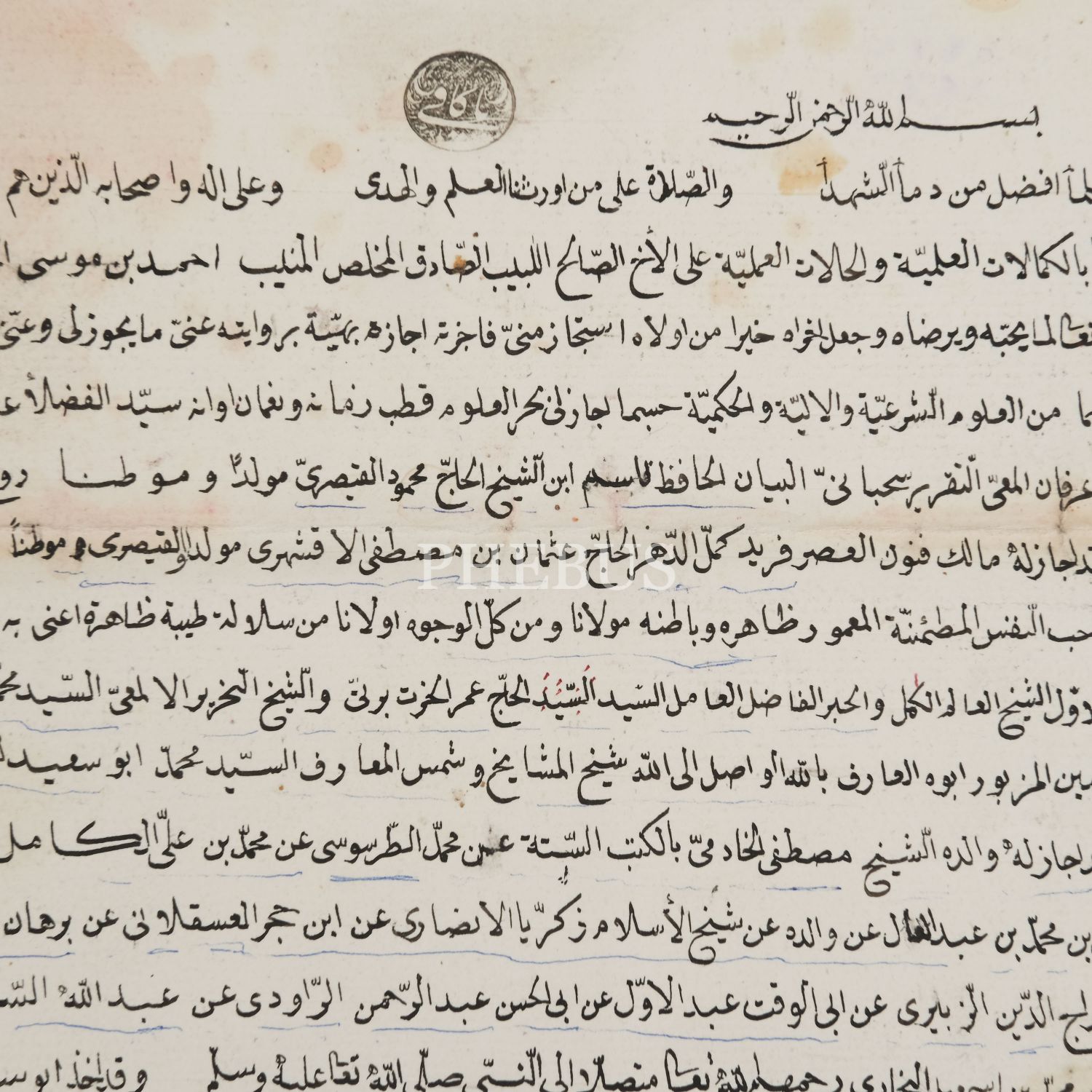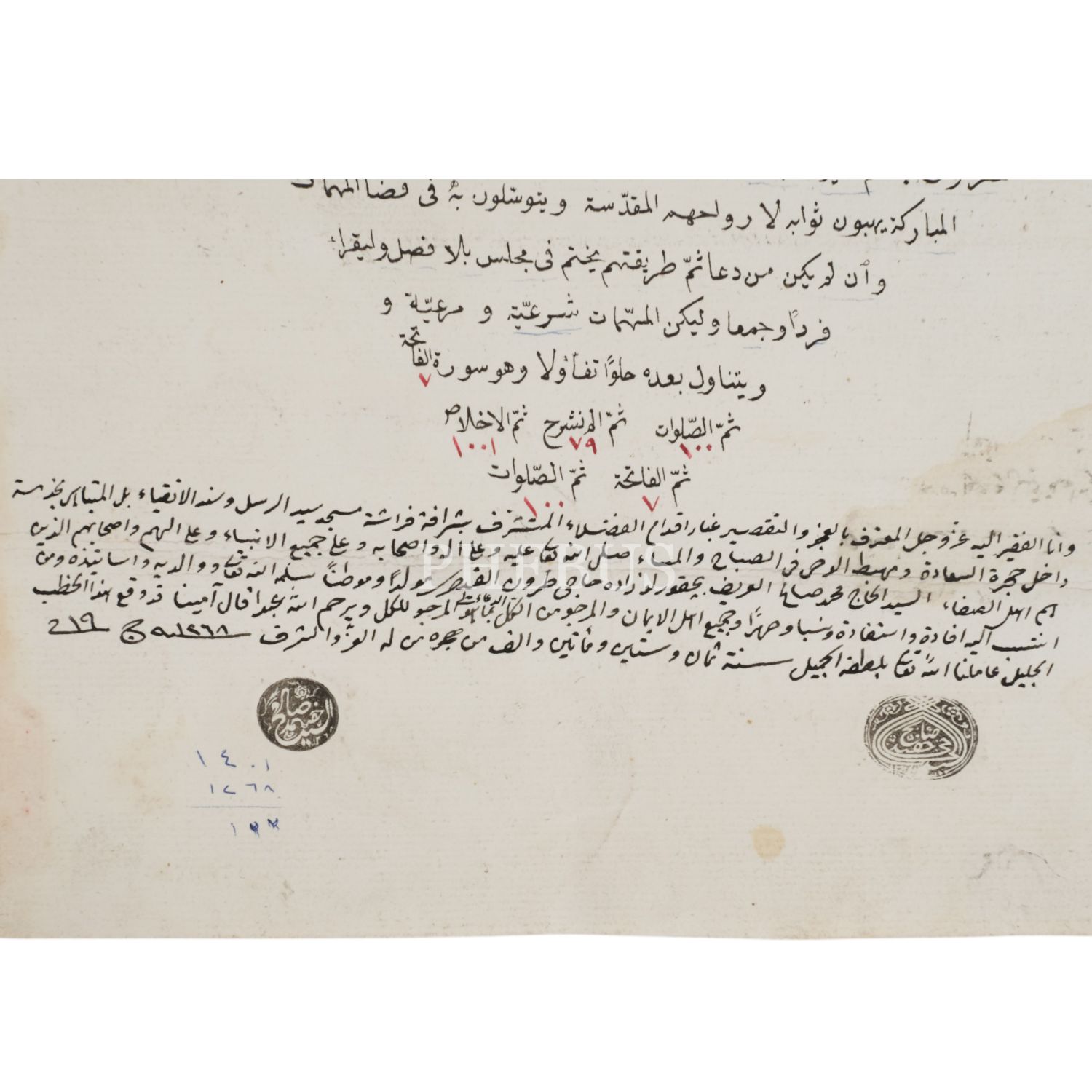 Ferâşet kayıtlı, Nakşî usulü ilmiye ve hatm-i hâcegân icazetnamesi, 1268 tarihli, 20x55 cm...