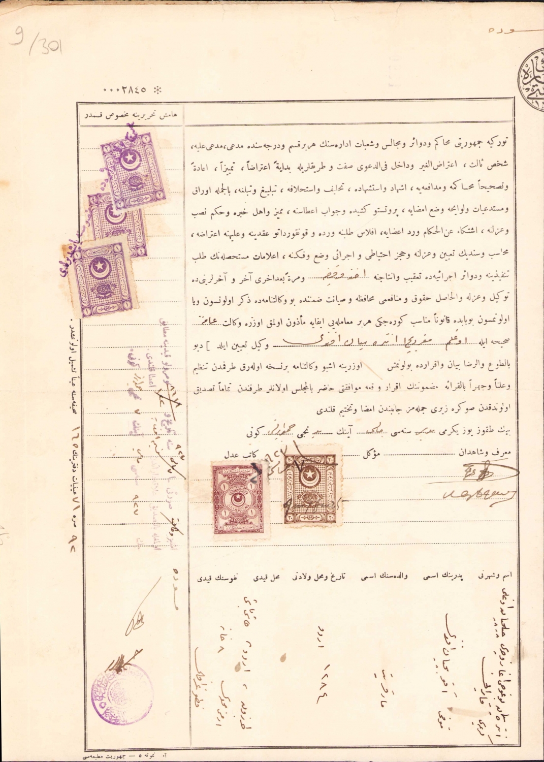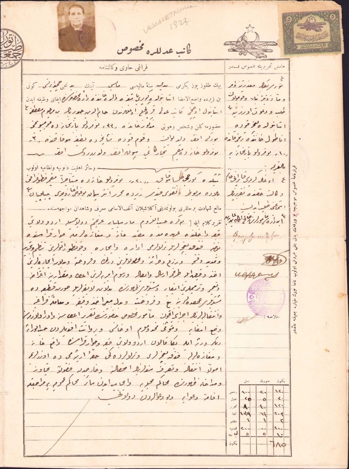 Osmanlıca vekaletname, 1927, 24x32 cm