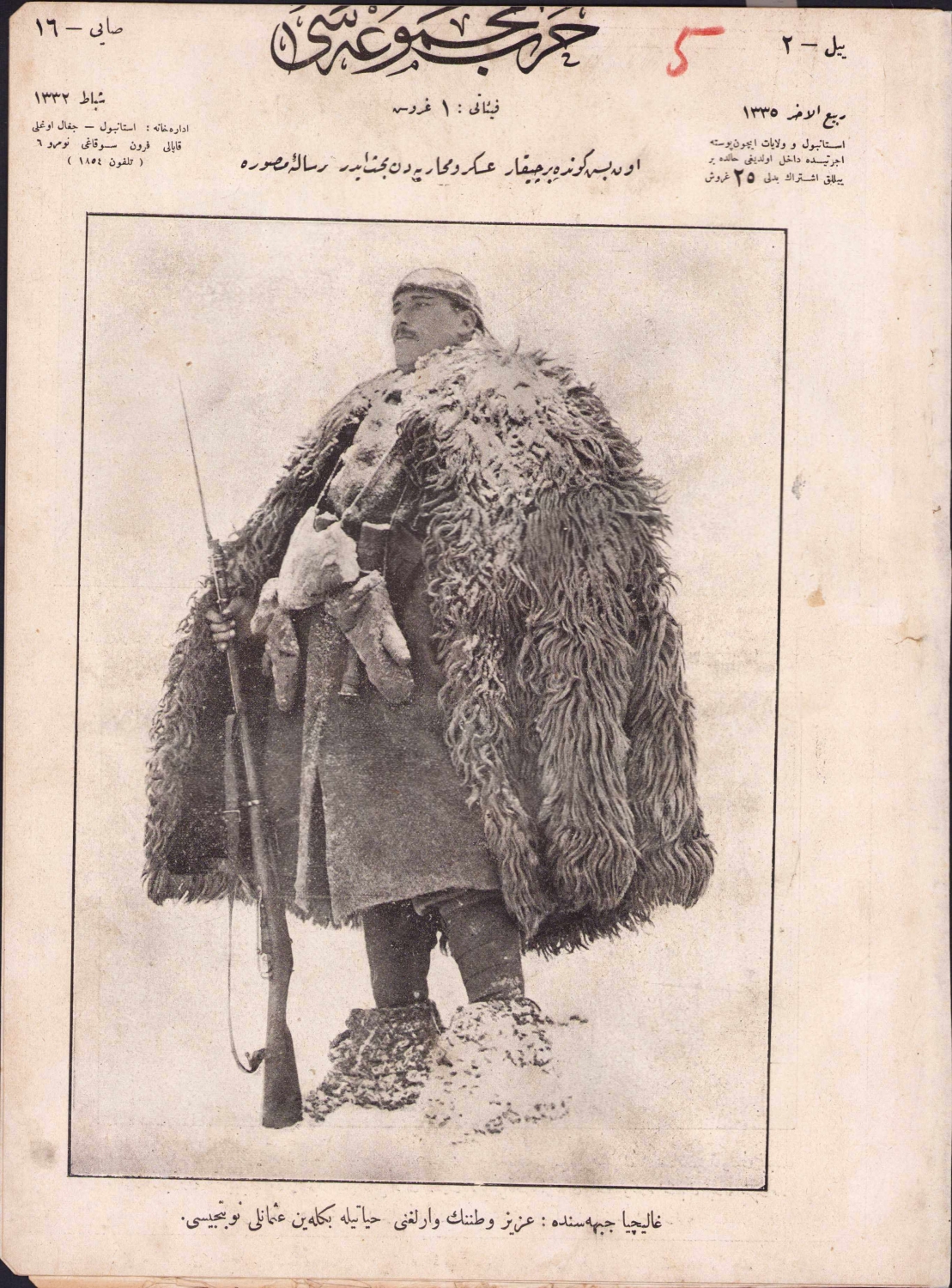 Osmanlıca Harp Mecmuası, 1332, kapak: "Galiçya Cephesinde: Aziz Vatanın Varlığını Hayatıyla Bekleyen Osmanlı Nöbetçisi", resimli, 20 sayfa, 22x29 cm