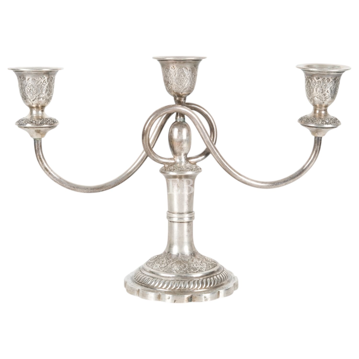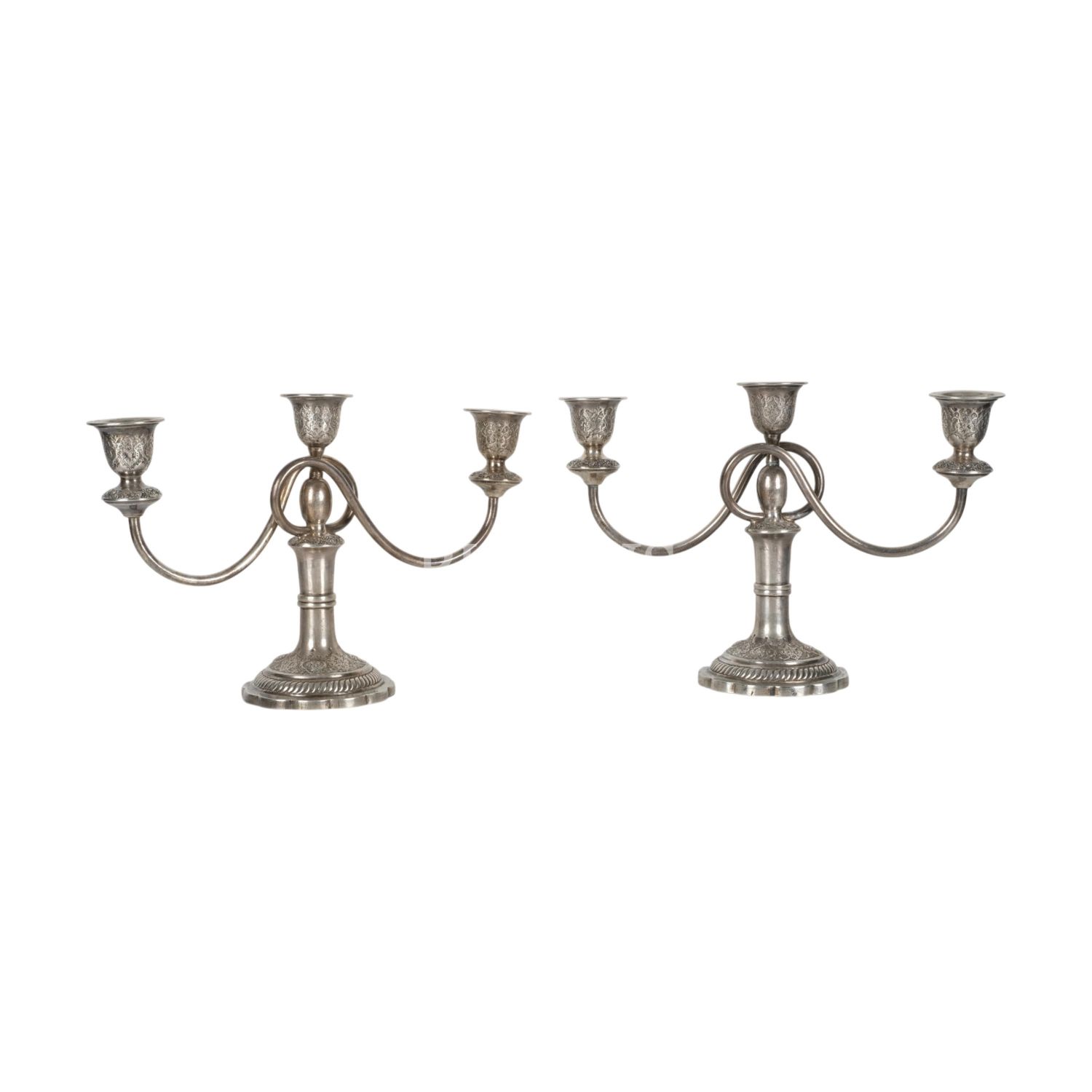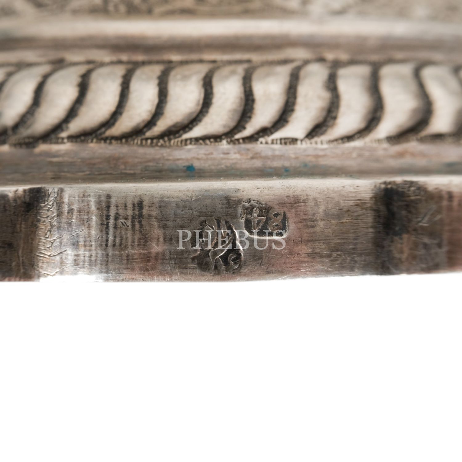 Osmanlıca usta damgalı ve "84" damgalı gümüş bir çift antika şamdan, 30x22x5 cm...
