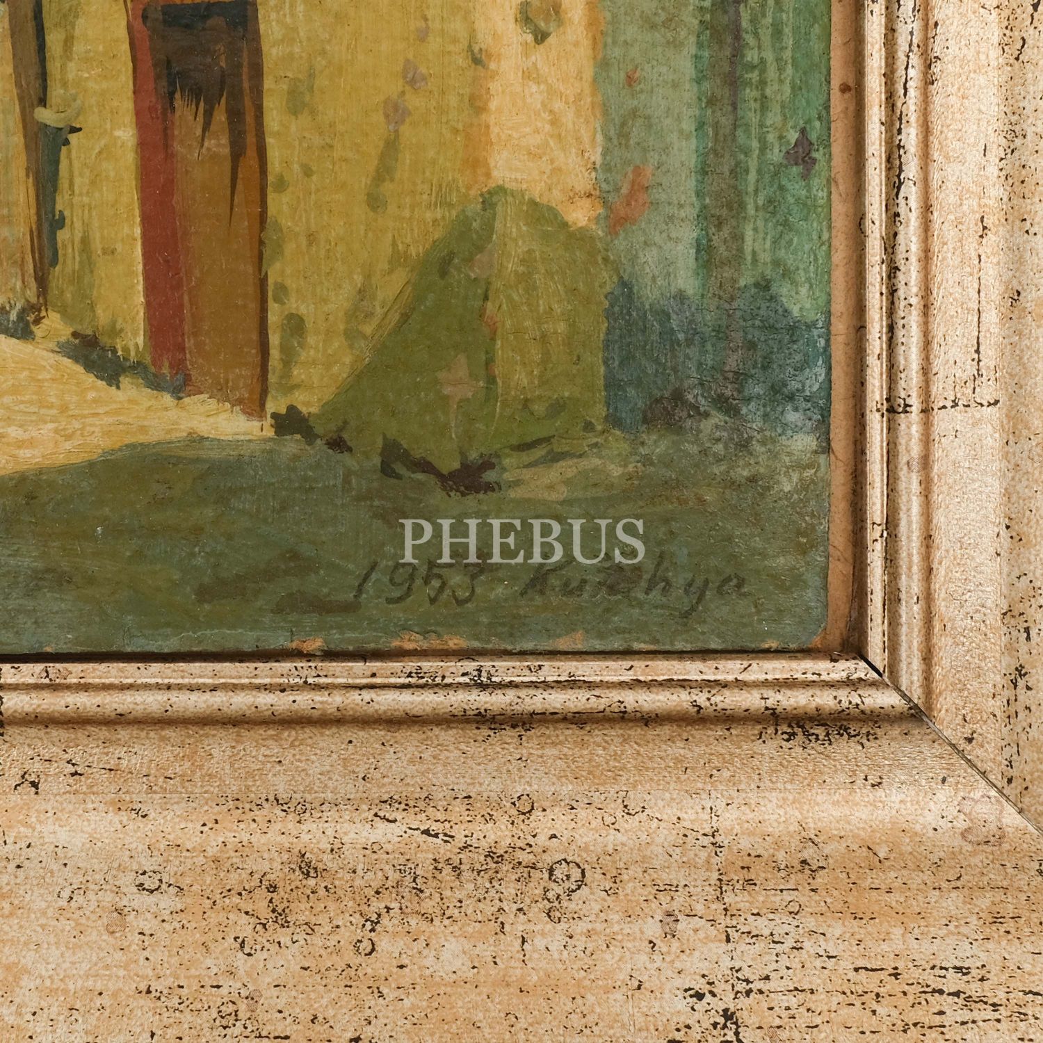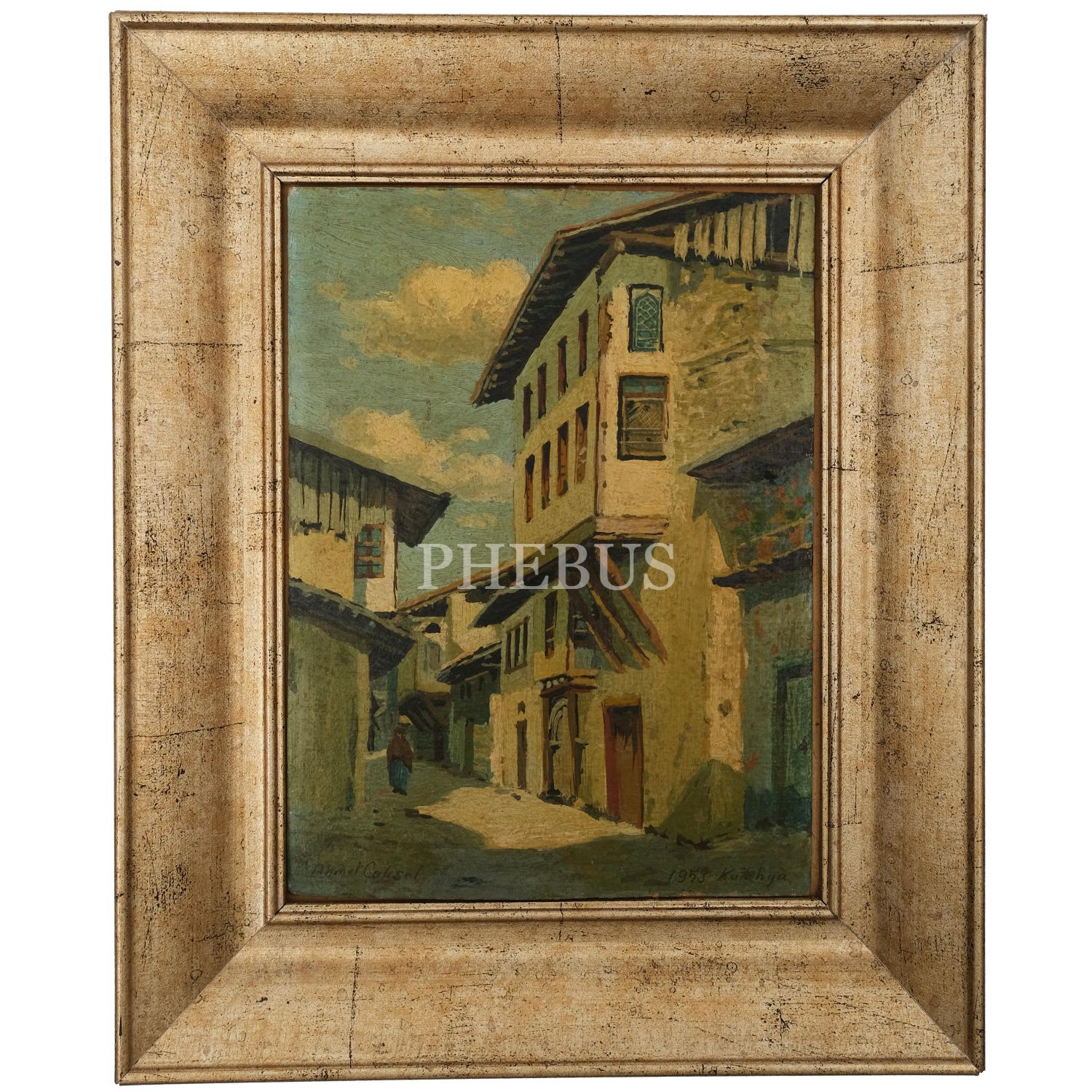 Ahmet Çalışel´in (Ahmet Yakupoğlu) imzalı, karton üzerine yağlıboya (mukavvaya marufle) peyzaj tablosu, 1953 (Kütahya), 18x24 cm...