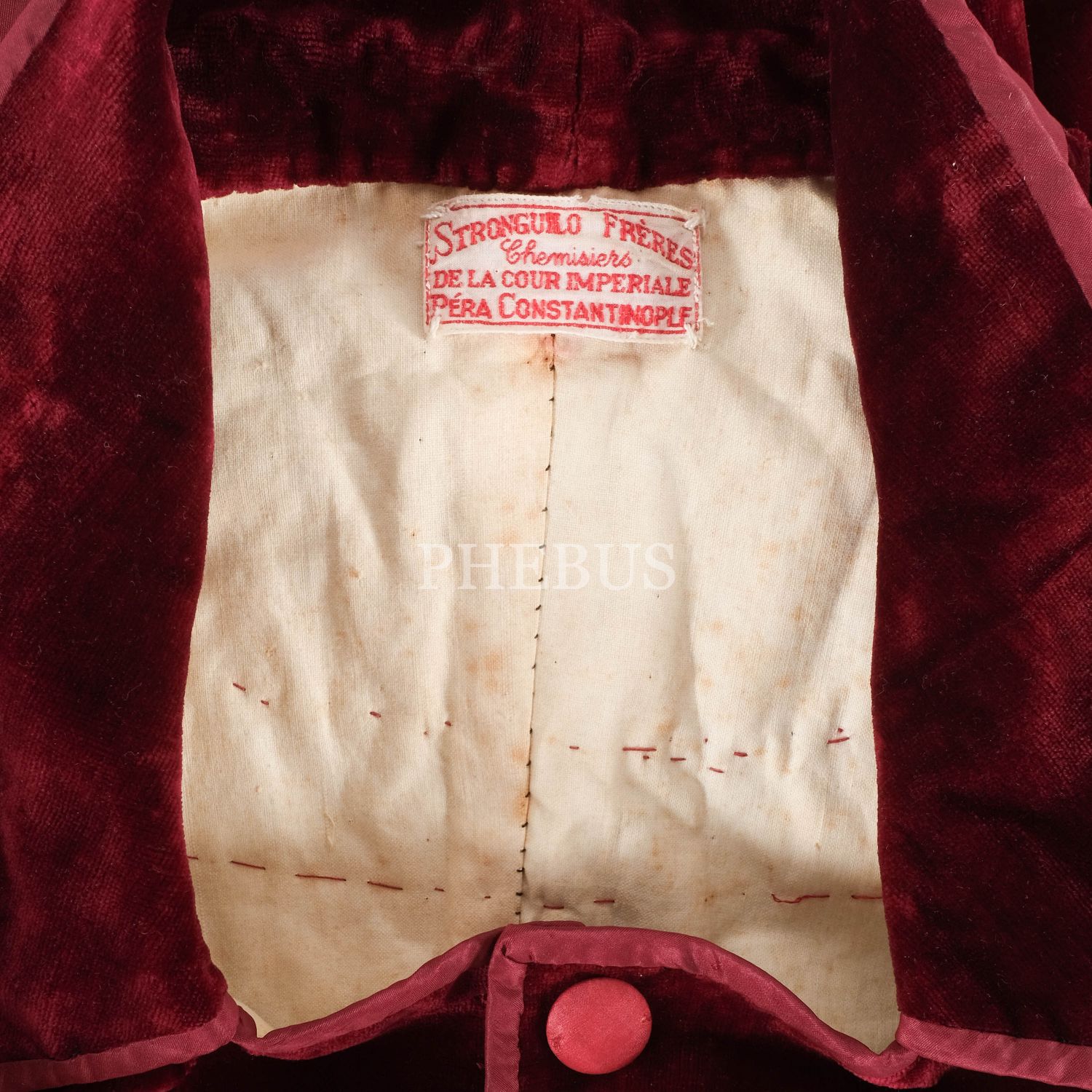 Pera´da faaliyet gösteren Strongulo Freres firması tarafından satışa sunulan "Constantinople" etiketli, ipek kadife ve dantel işlemeli kadın ceketi, 40x60 cm...