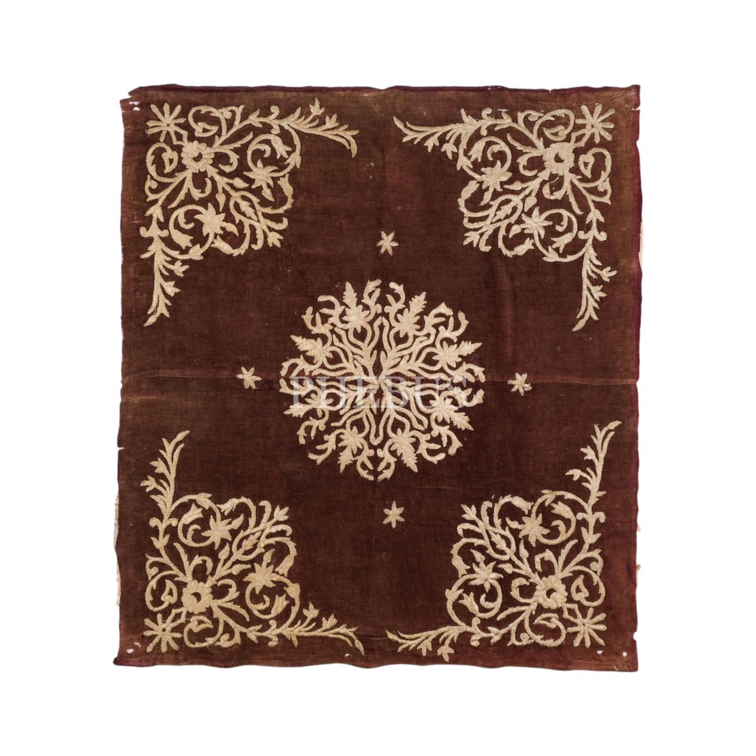 Kadife üzerine gümüş sırma işlemeli, el işçiliğiyle dokunmuş Edirne işi bohça, 88x82 cm...