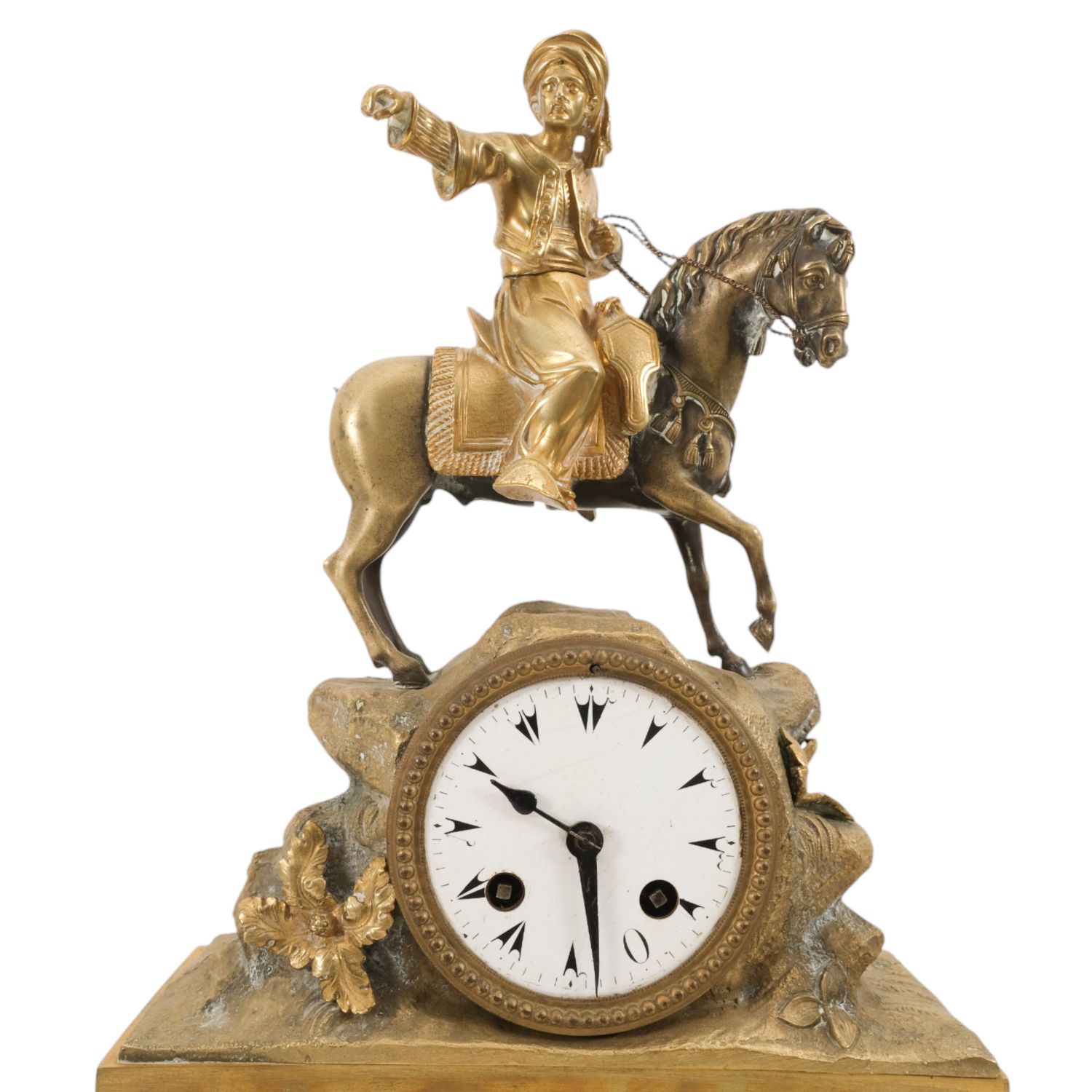 Osmanlı süvarisi dekorlu, kadranı Osmanlıca rakamlı bronz konsol saat, 40x22x10 cm...