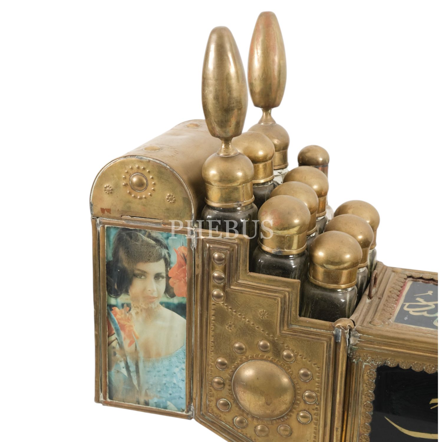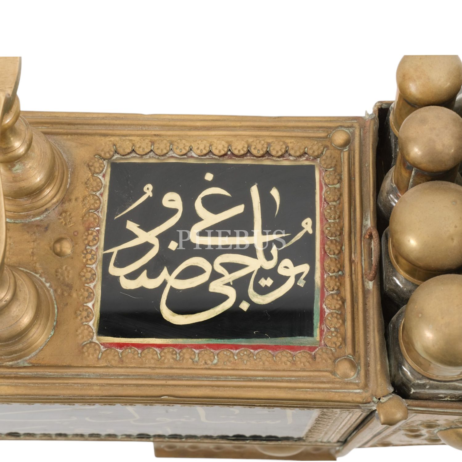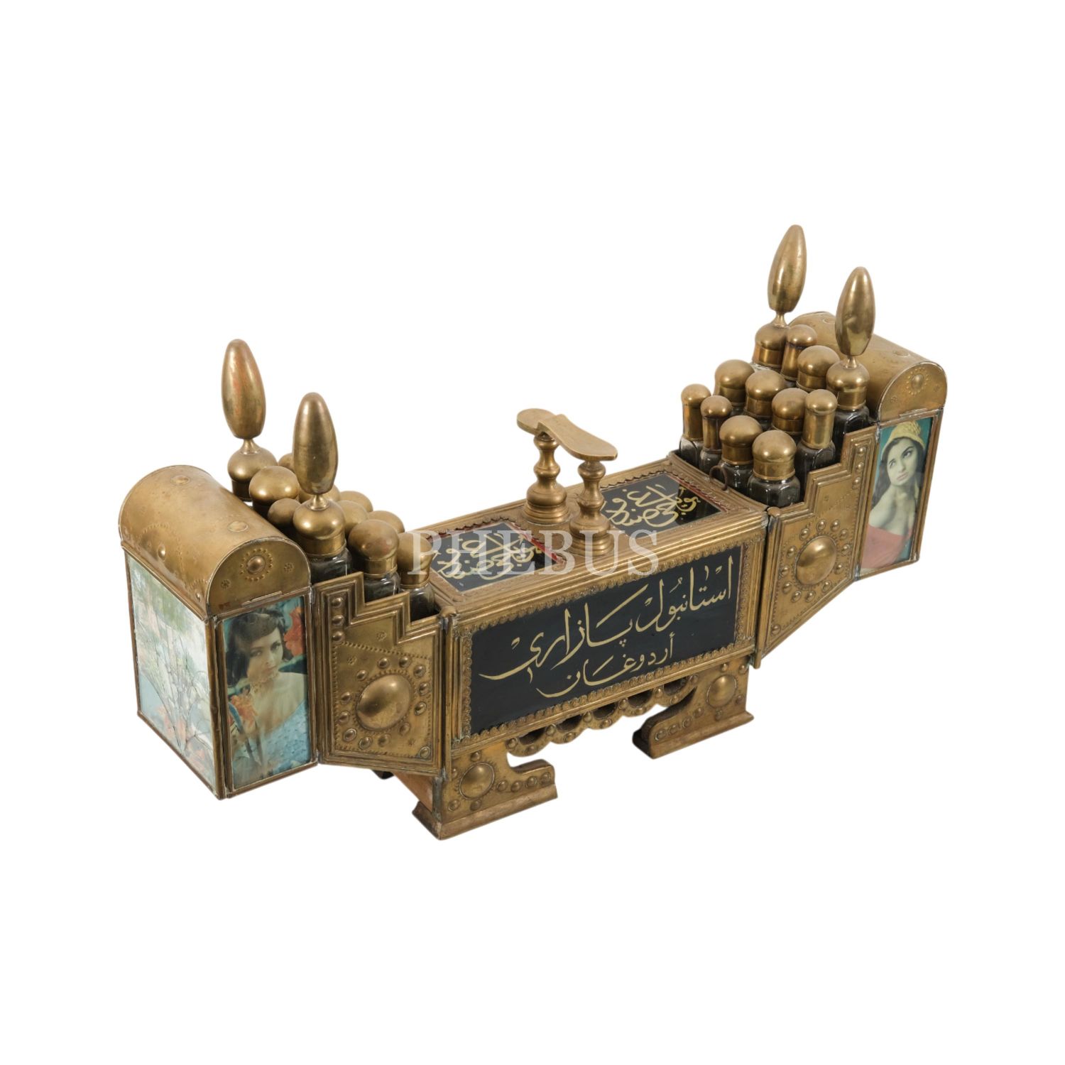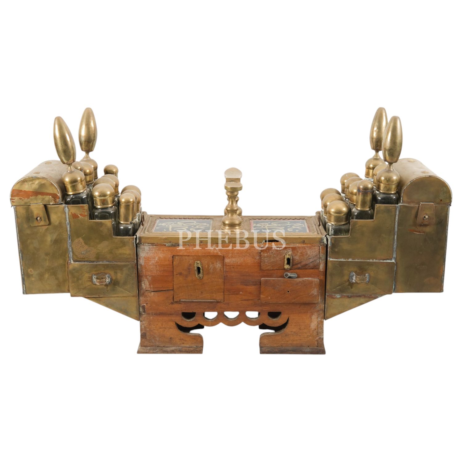 Ön yüzünde Osmanlıca "İstanbul Pazarı - Erdoğan", üst yüzeyindeyse "Boyacı sandığı" yazılı Osmanlı döneminden boyacı sandığı, 94x20x43 cm...